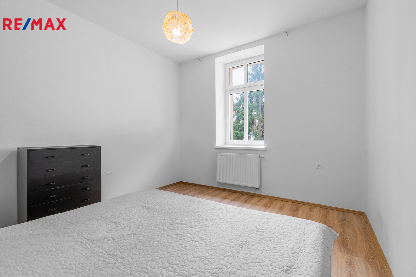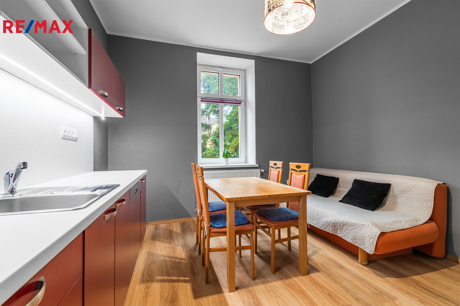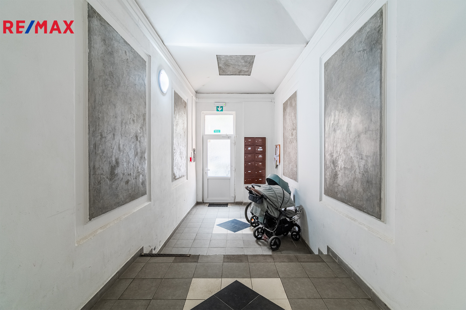 Dispozice bytu nabízí předsíň s velkou vestavnou skříní, kuchyni s vybavenou kuchyňskou linkou, samostatný pokoj a koupelnu s vanou, toaletou a místem pro automatickou pračku. Oba pokoje jsou neprůchozí, s orientací na jižní stranu, což zajišťuje dostatek světla po celý den a v zimních měsících pomáhá snížit náklady na vytápění. Výhled z oken je do společné zahrady, kterou můžete samozřejmě využívat k odpočinku, relaxaci či posezení s přáteli. Svým umístěním do vnitrobloku je v bytě zajištěn klid a naprosté ticho, takže ruchu okolních ulic se Vás týkat určitě nebude. K bytu dále náleží prostorný sklep 5,2 m2 v suterénu domu, do kterého se pohodlně vejde několik jízdních kol a ještě zbyde dostatek místa pro uskladnění například sezonních věcí. Celková užitná plocha bytu je tedy 45,4 m2. Topení a ohřev teplé vody je zajištěno dálkově.