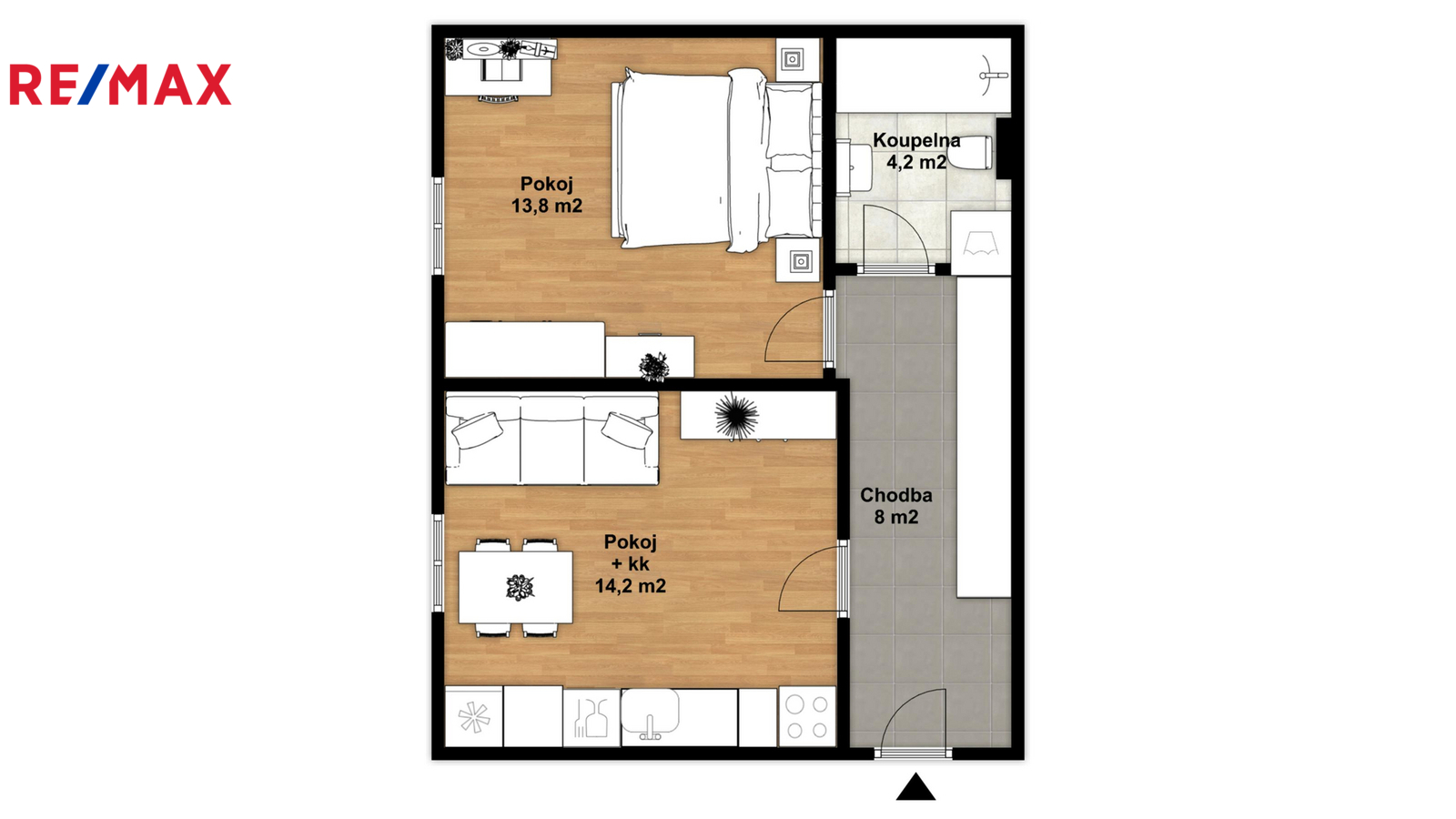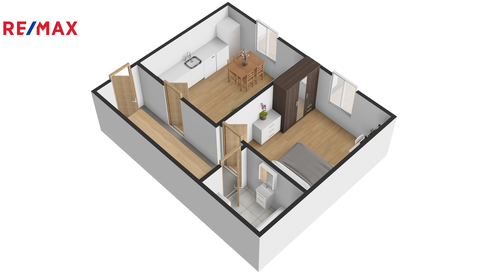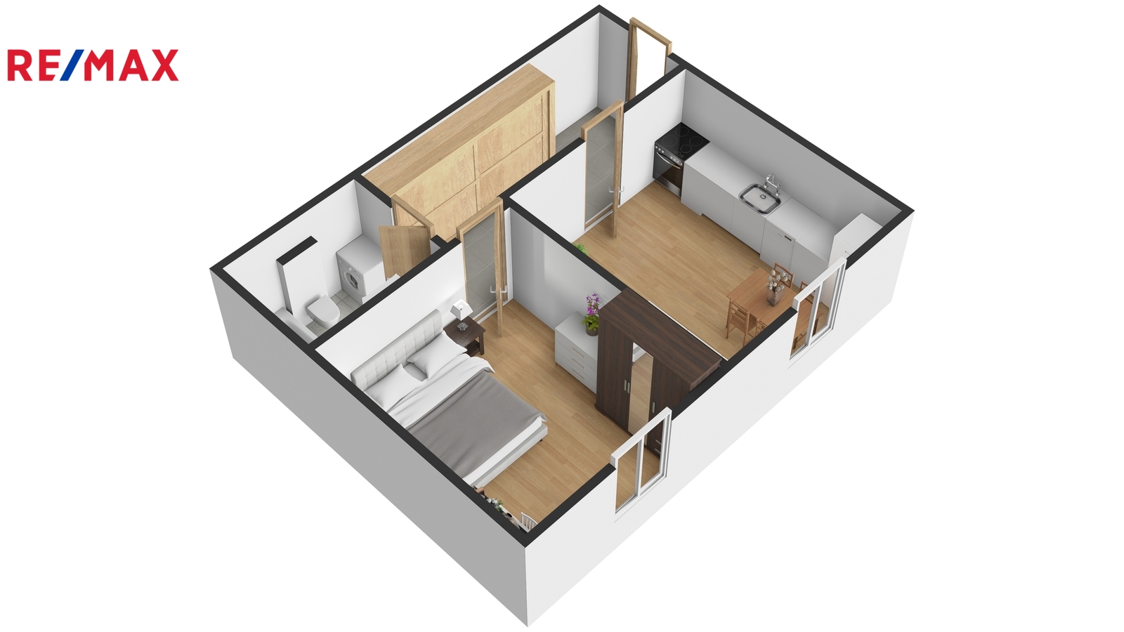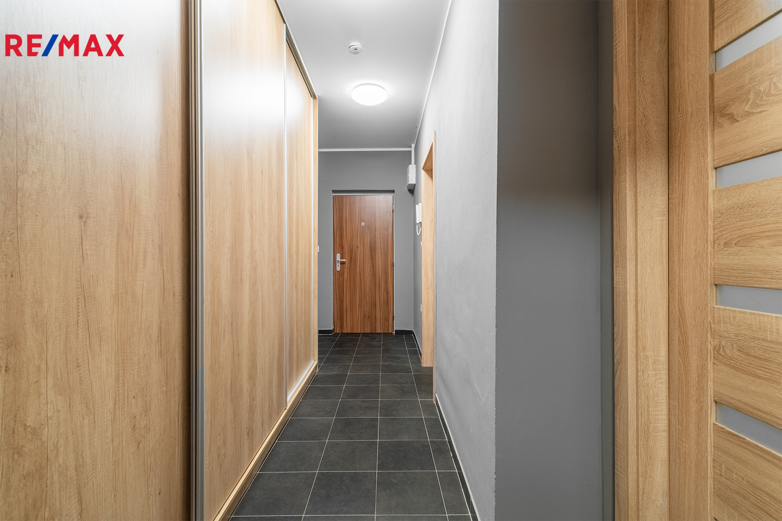 Dispozice bytu nabízí předsíň s velkou vestavnou skříní, kuchyni s vybavenou kuchyňskou linkou, samostatný pokoj a koupelnu s vanou, toaletou a místem pro automatickou pračku. Oba pokoje jsou neprůchozí, s orientací na jižní stranu, což zajišťuje dostatek světla po celý den a v zimních měsících pomáhá snížit náklady na vytápění. Výhled z oken je do společné zahrady, kterou můžete samozřejmě využívat k odpočinku, relaxaci či posezení s přáteli. Svým umístěním do vnitrobloku je v bytě zajištěn klid a naprosté ticho, takže ruchu okolních ulic se Vás týkat určitě nebude. K bytu dále náleží prostorný sklep 5,2 m2 v suterénu domu, do kterého se pohodlně vejde několik jízdních kol a ještě zbyde dostatek místa pro uskladnění například sezonních věcí. Celková užitná plocha bytu je tedy 45,4 m2. Topení a ohřev teplé vody je zajištěno dálkově.