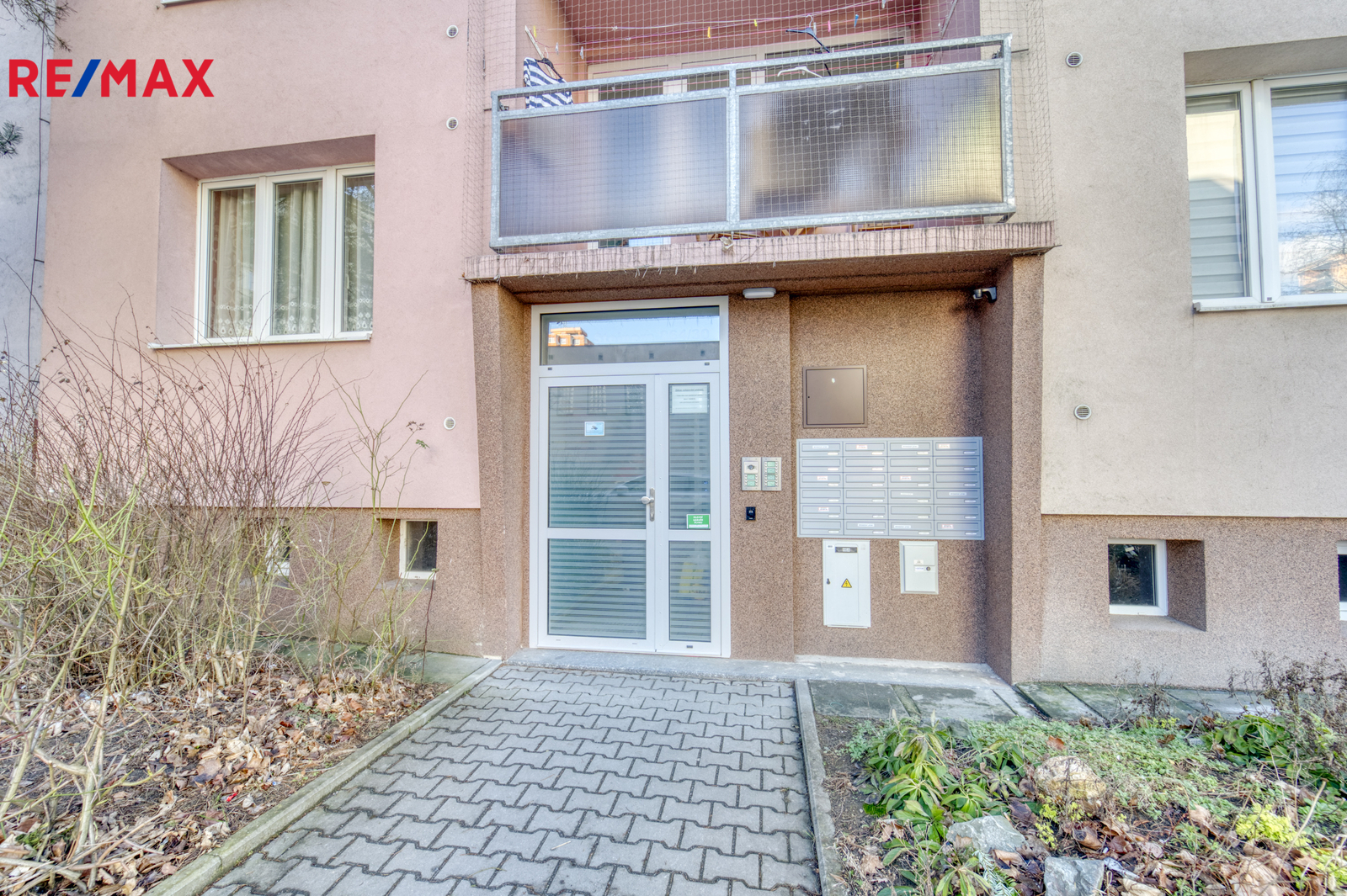 Jednotka se nachází ve vyvýšeném přízemí v části domu, kde pod okny neprochází chodník, což zajišťuje dostatek soukromí.