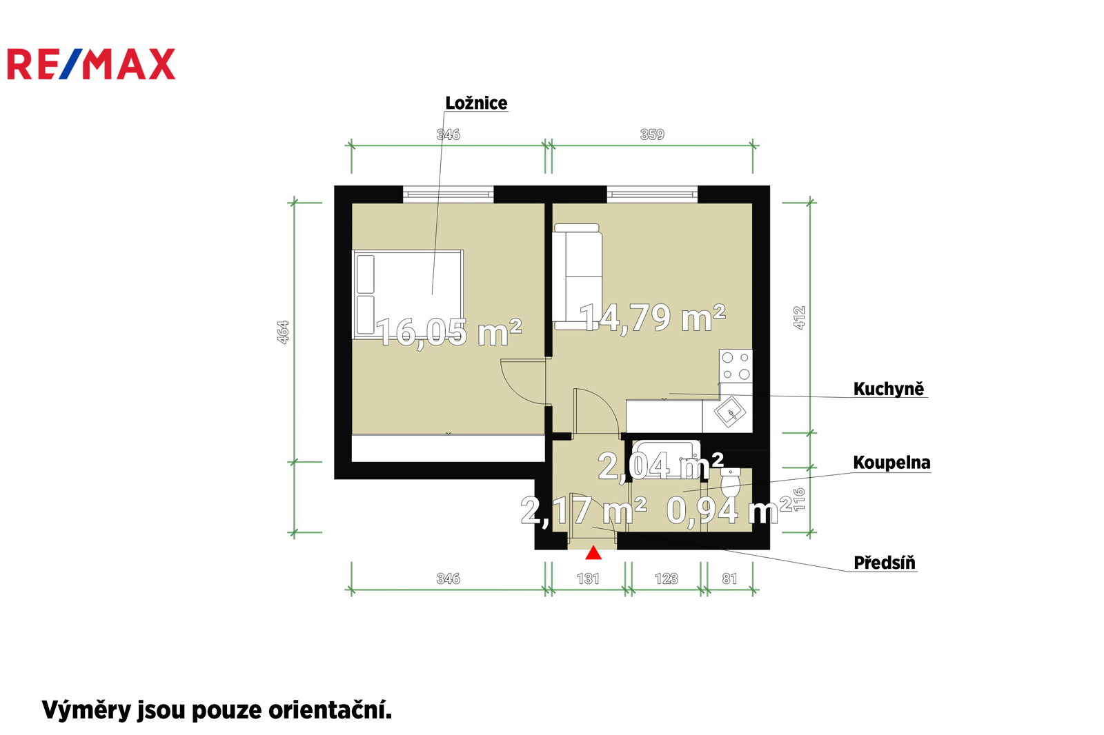 Byt je velmi příjemný, s dostatkem denního světla a praktickým dispozičním řešením. Součástí je samostatná kuchyň o výměře 14,45 m², pokoj o výměře 16,00 m², předsíň, koupelna a WC.