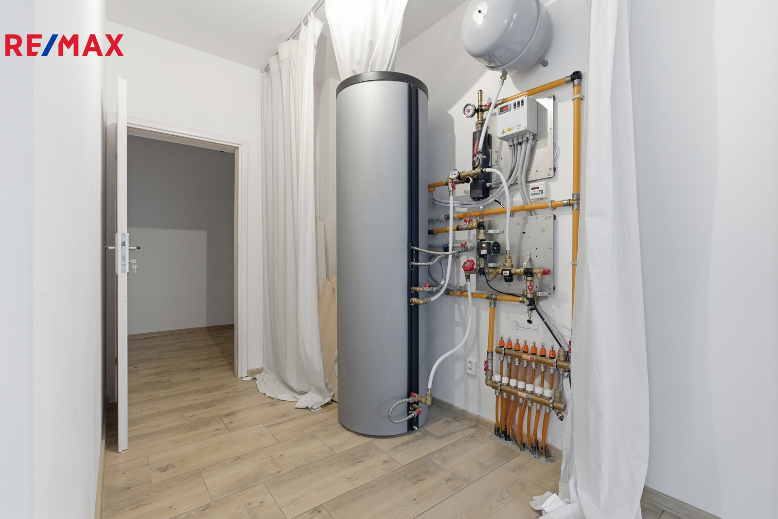 Byt je vybaven tepelným čerpadlem vzduch/voda, podlahovým topením v celém objektu, novými rozvody vody, elektřiny i datových sítí. K dispozici je obecní vodovod, kanalizace, elektřina a požární čidla. Objekt je zateplený a nabízí velmi nízké provozní náklady, orientačně 1 500–2 000 Kč měsíčně.