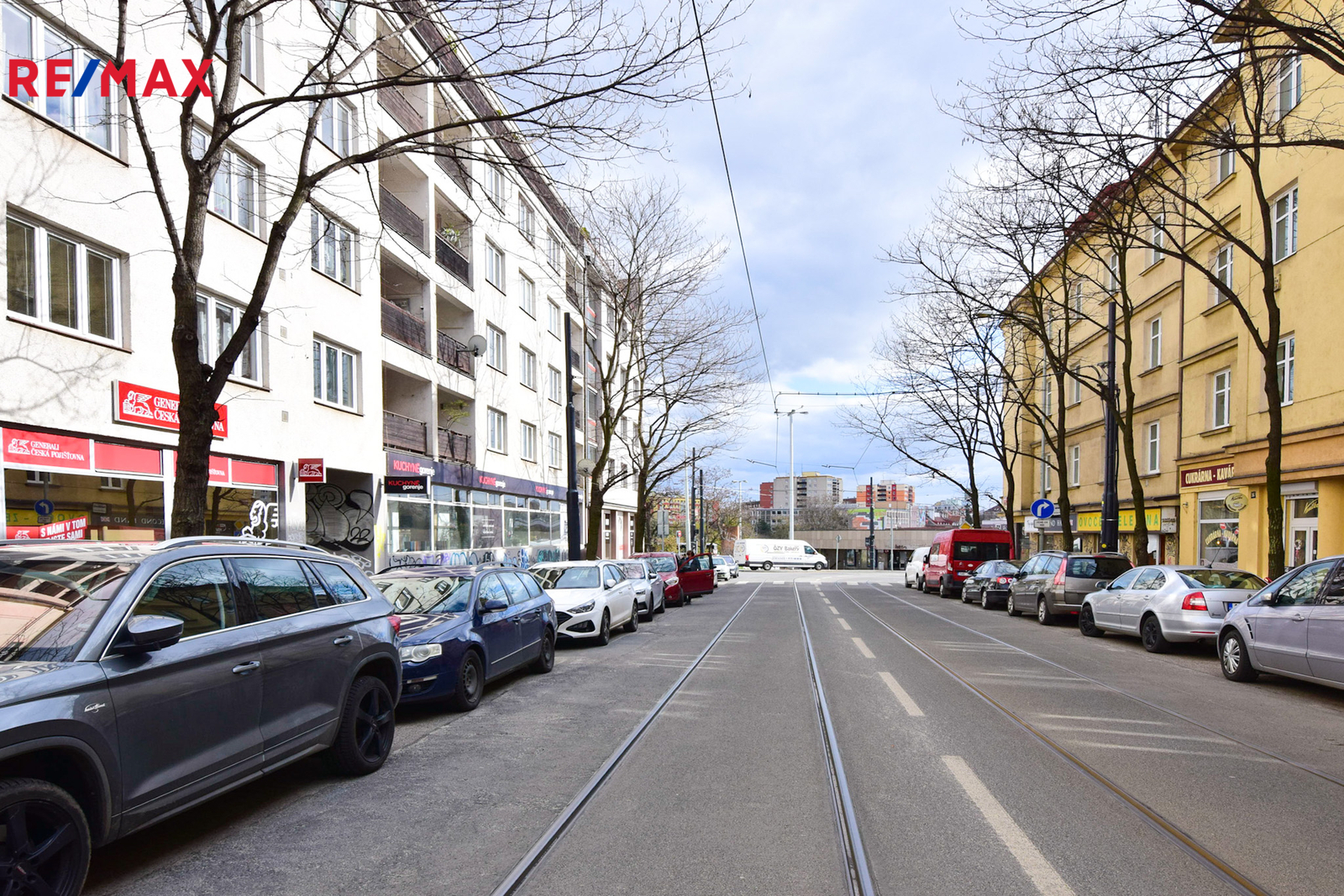 - přímo u domu MHD (zelená linka metra "A" /tram Strašnická)