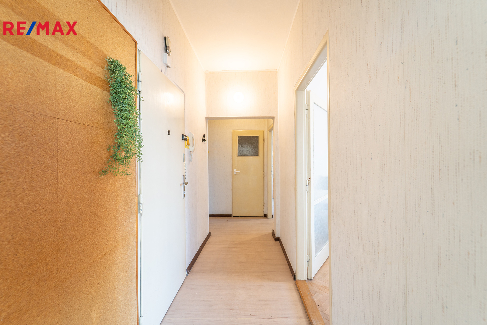 Nabízený byt o dispozici 2+1 má výměru 49,77 m2 a je umístěn ve 4. patře (poslední patro) panelového domu bez výtahu. Je v původním stavu, vhodný k celkové rekonstrukci. Kuchyň a ložnice jsou orientované na sever, obývací pokoj na východ. Jádro je zděné, okna jsou plastová. Na podlaze jsou v pokojích zachovalé parkety, na chodbě a v kuchyni je položené lino. V chodbě je prostorná vestavěná skříň.