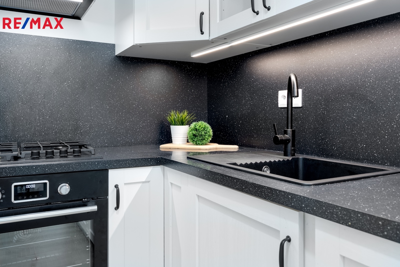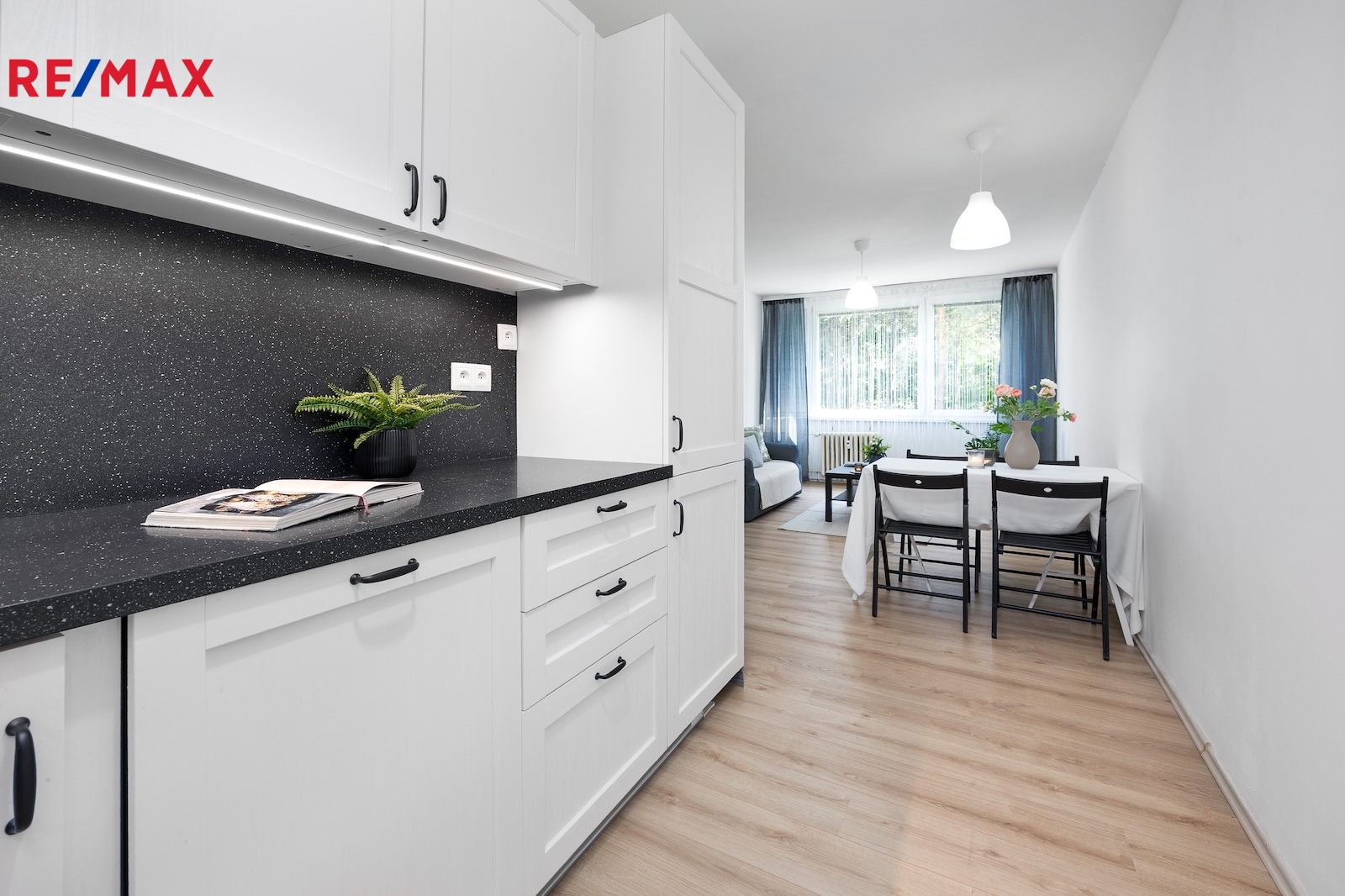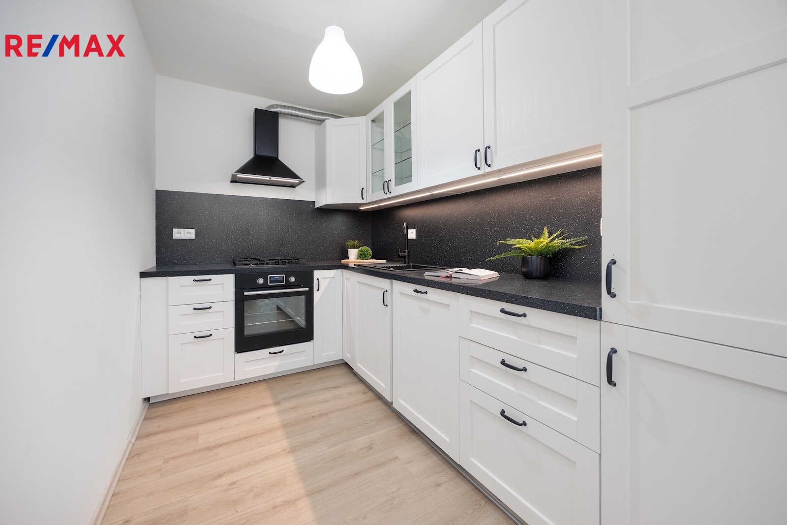 Byt prošel rozsáhlou rekonstrukcí – nová podlahová krytina, zděné jádro, kuchyňská linka se spotřebiči (plynový sporák, elektrická trouba, digestoř, myčka). V koupelně se nachází vana a pračka, toaleta je samostatná. Dispozice dále nabízí prostornou chodbu a šikovný výklenek pro vestavěnou skříň či komoru. Podlahy tvoří plovoucí krytina, v koupelně a WC je dlažba. K bytu náleží sklep. Okna jsou plastová, opatřená vnitřními žaluziemi. Dálkové vytápění a ohřev vody.