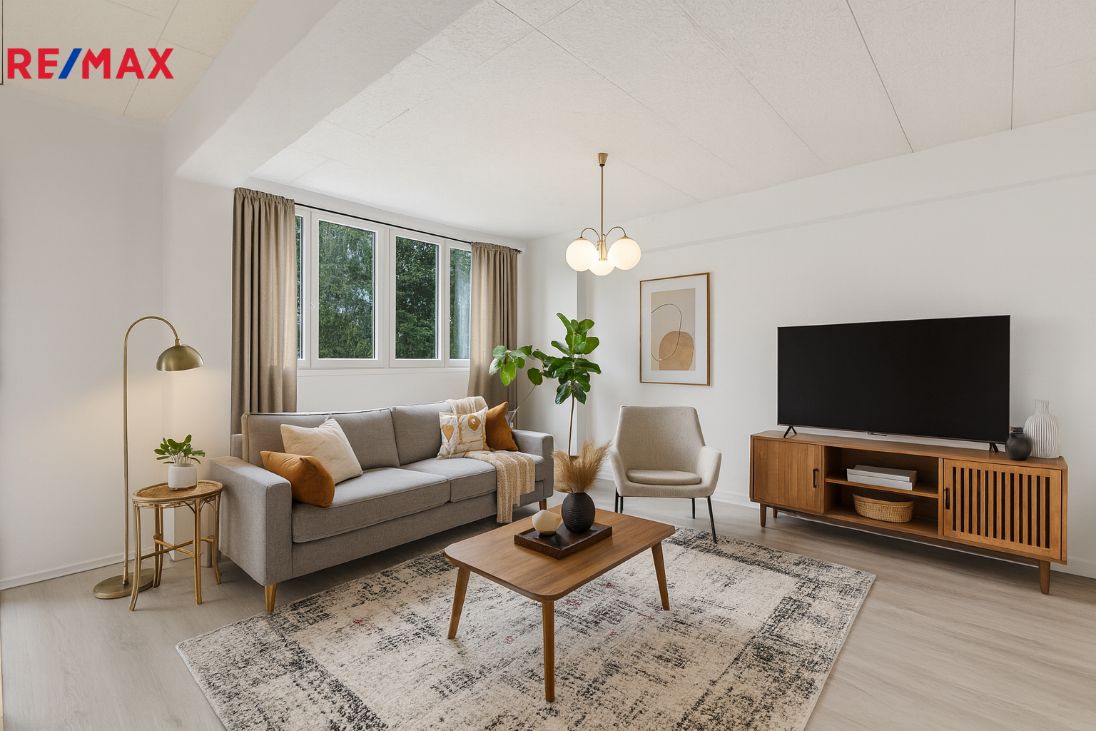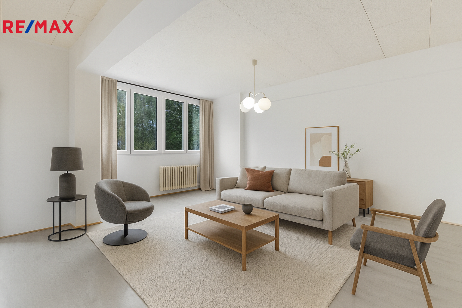 Byt je v původním stavu. Díky klasické dispozici se samostatnou kuchyní a třemi neprůchozími pokoji poskytuje dostatek prostoru. Součástí bytu je lodžie 3 m², orientovaná do upraveného a klidného vnitrobloku se zelení. Celková užitná plocha bytu činí 73,49 m².