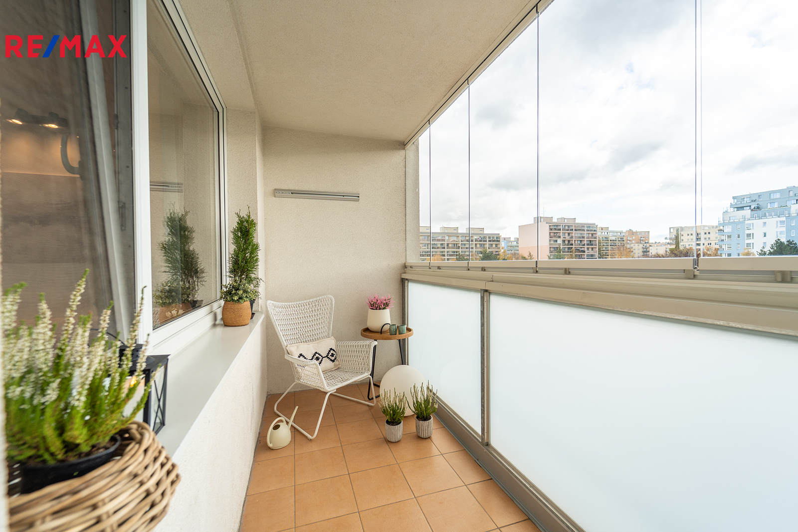 Interiér bytu prošel právě dokončenou kvalitní rekonstrukcí. Byt tedy disponuje zděným jádrem, kompletní elektroinstalaci v mědi, plastovými okny, novými interiérovými dveřmi, bezpečnostními vstupními dveřmi, novou podlahovou krytinou a nově vyštukovanými zdmi. Kuchyňská linka je doplněna kamenným obkladem Marazzi. Prostorná a zasklená lodžie s keramickou dlažbou představuje příjemný klidový prostor s celoročním využitím.