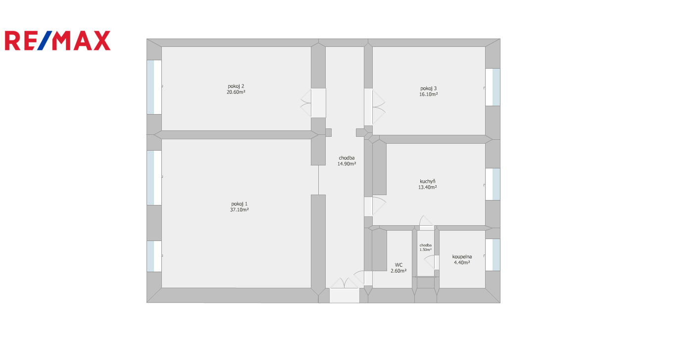 Dispozice bytu nabízí tři prostorné místnosti, kuchyňské zázemí, koupelnu, samostatné WC a další sprchu s WC.