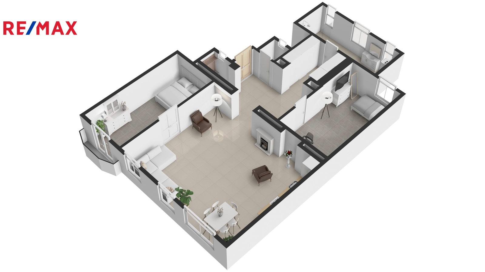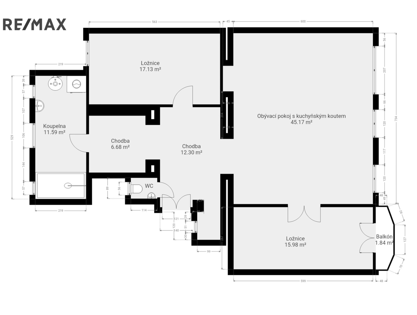 Byt nabízí promyšlenou dispozici: vstupní halu, prostorný obývací pokoj, master ložnici s balkonem, ložnici, koupelnu se sprchovým koutem, šatnu a samostatnou toaletu.