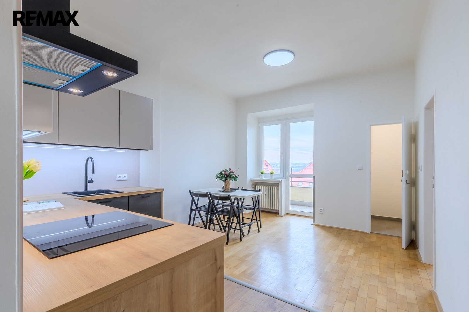 Exkluzivně nabízíme k prodeji kompletně zrekonstruovaný byt o dispozici 2+kk s balkonem, o celkové ploše 60,2 m² situovaný v oblíbené části Vinohrad na Praze 3.