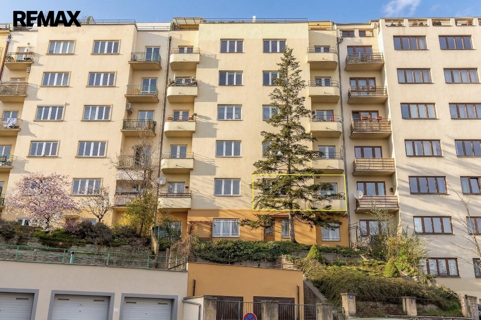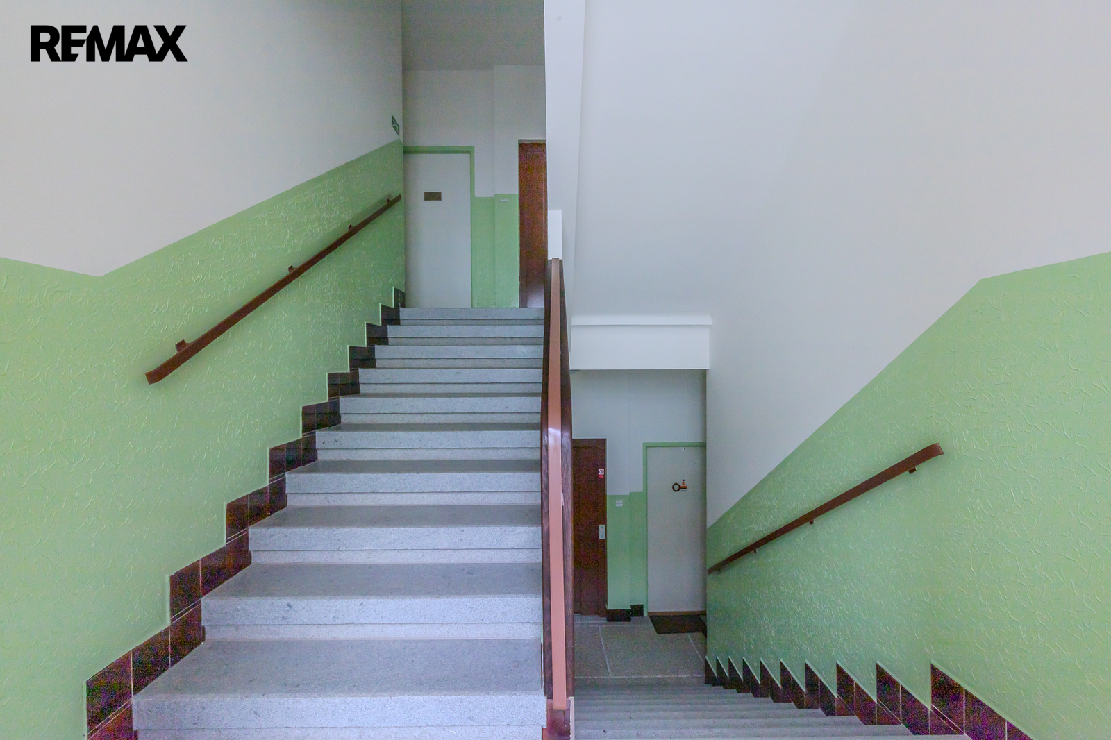 Byt je situován ve 2. nadzemním podlaží z ulice Soběslavská (z ulice V Horní Stromce situován jako -1. patro) v udržovaném domě s výtahem.