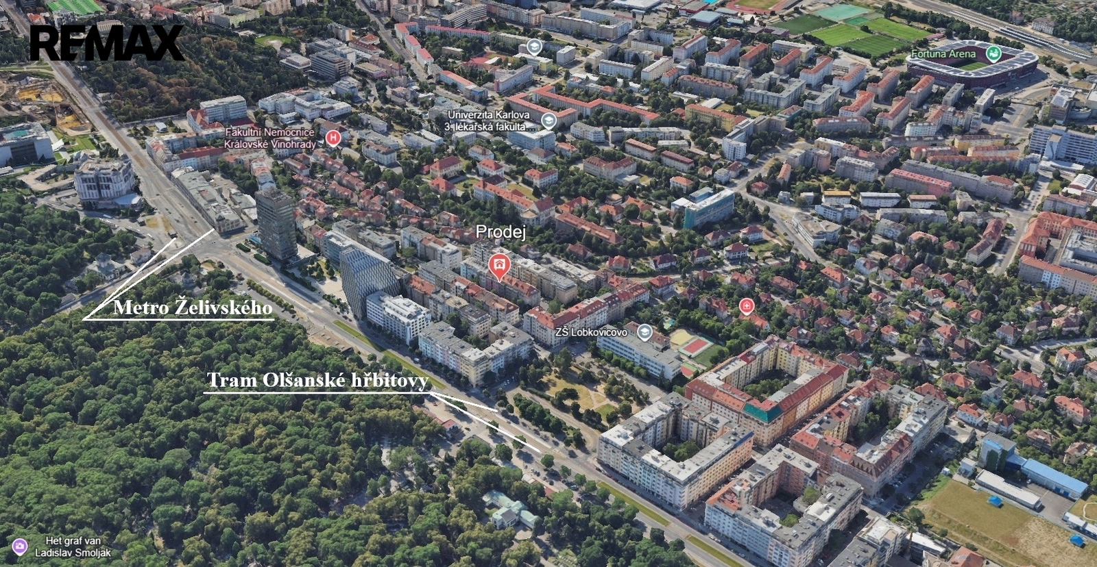 Výbornou dopravní dostupnost zajišťují stanice metra a bus Želivského a tram i bus zastávky Olšanské hřbitovy.