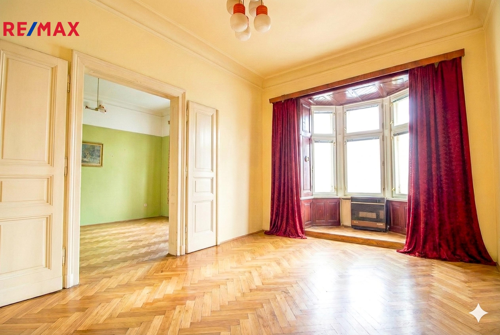 Ve výhradním zastoupení majitelky nabízíme prostorný byt 3+1 o velikosti 114,3 m² ve 3. nadzemním podlaží činžovního domu s výtahem, na prestižní adrese v ulici Korunní, Praha 3 – Vinohrady.
