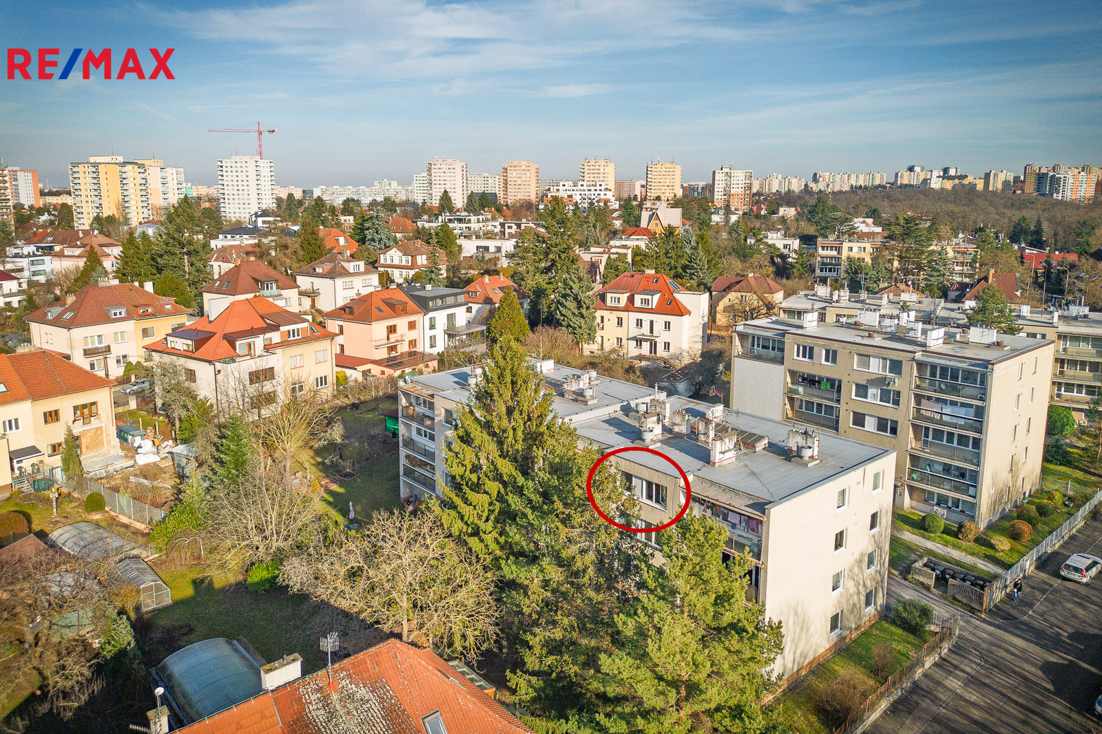 Byt situovaný ve 4. NP se nachází v lokalitě s konsolidovanou vilovou a bytovou zástavbou.