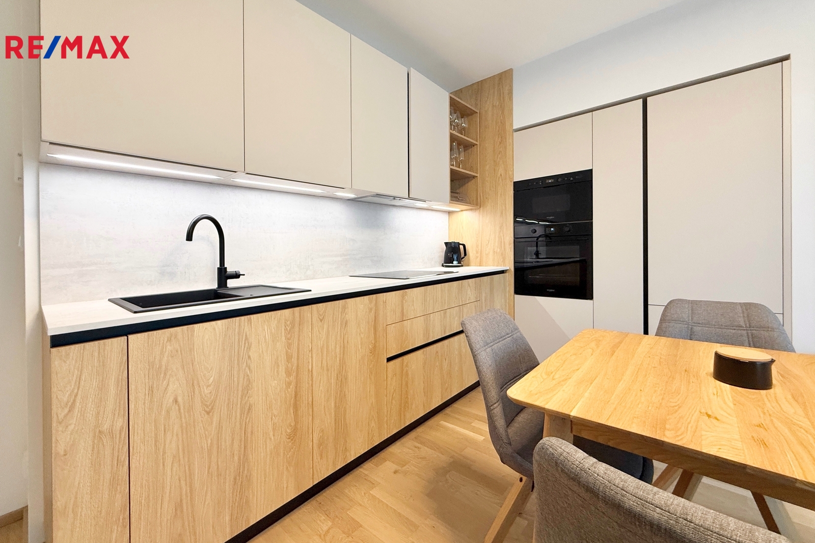 Byt se nachází v novostavbě a je kompletně zařízený na míru, takže je připraven k okamžitému nastěhování bez nutnosti dalších investic. Interiér je navržen v moderním a elegantním stylu – světlý, vzdušný a velmi příjemný na bydlení. Dispozice zahrnuje prostornou vstupní chodbu, komoru s úložným prostorem, koupelnu s kvalitní sanitou, obývací pokoj s plně vybavenou kuchyní a samostatnou ložnici.