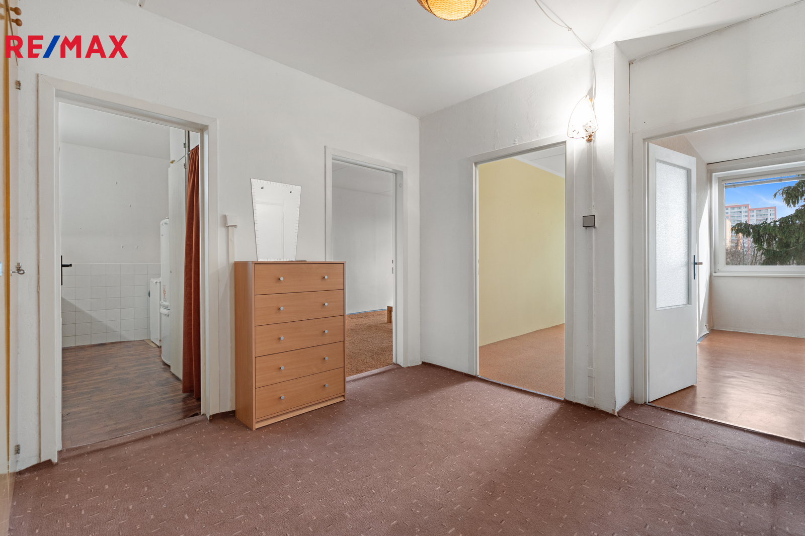 Nabízíme k prodeji byt o dispozici 3+1 v osobním vlastnictví, umístěný ve 3. nadzemním podlaží udržovaného panelového domu s výtahem v ulici Mikulova, Praha 4 – Chodov.