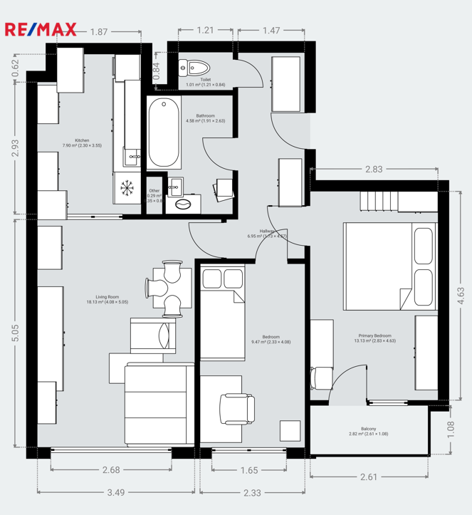 Dispozice je funkční a bez zbytečných ztrát. Ideální jako startovní rodinné bydlení, ale i jako investiční byt na budoucí rekonstrukci.
