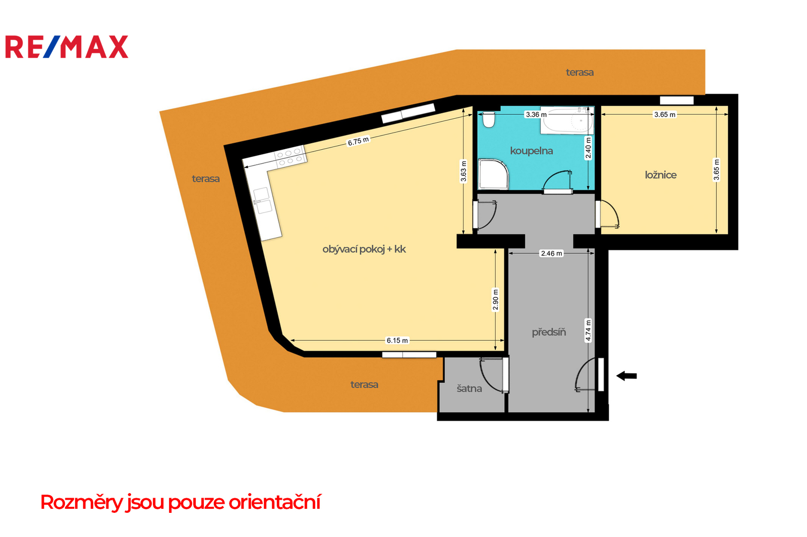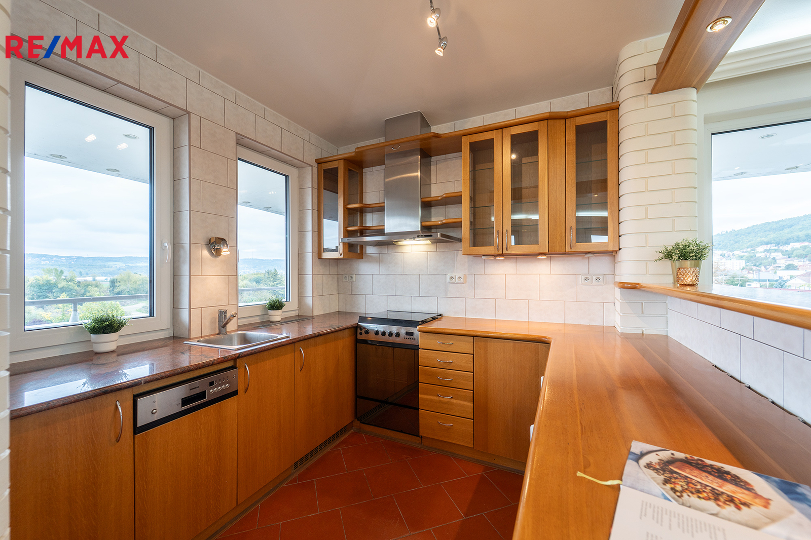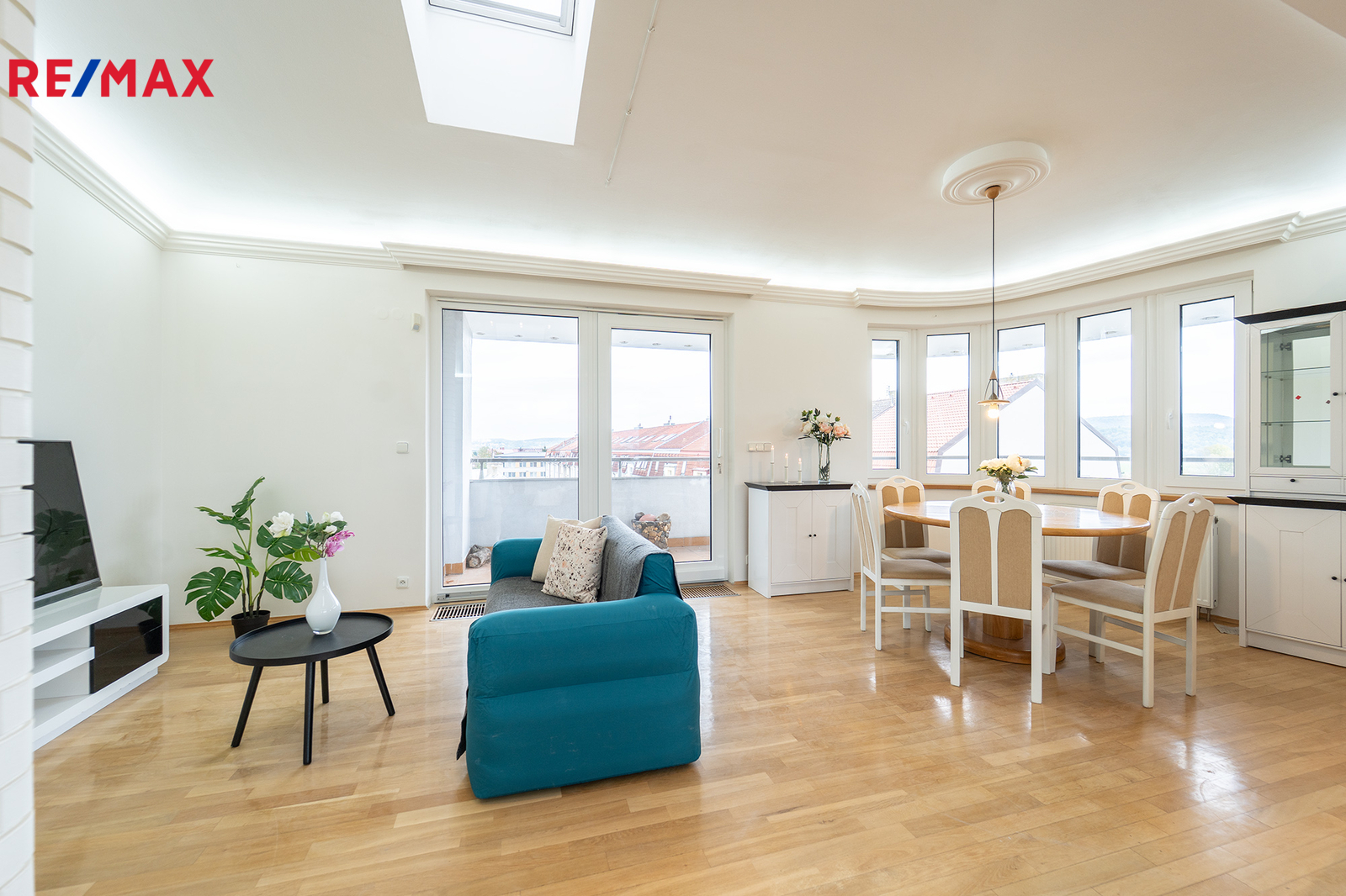 Nabízíme Vám ke koupi bytovou jednotku ve vynikajícím stavu o celkové užitné ploše 79,3 m2 + terasa 43,3 m2 + sklep 2,6 m2 s garážovým parkovacím stáním v suterénu budovy. Byt, nacházející se v 5. nadzemním podlaží skeletového domu, se skládá obývacího pokoje s kuchyňským koutem, ložnice, koupelny s toaletou a chodby.