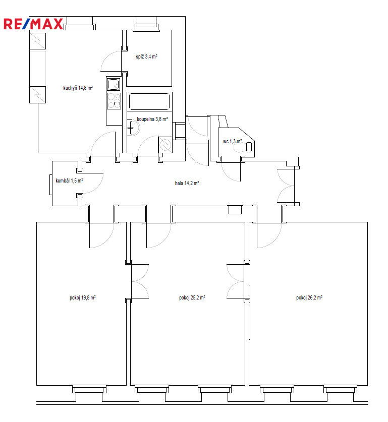 Ohřev vody zajištěn bojlerem, vytápění elektrickými konvektory. K bytu náleží i velká sklepní kóje.