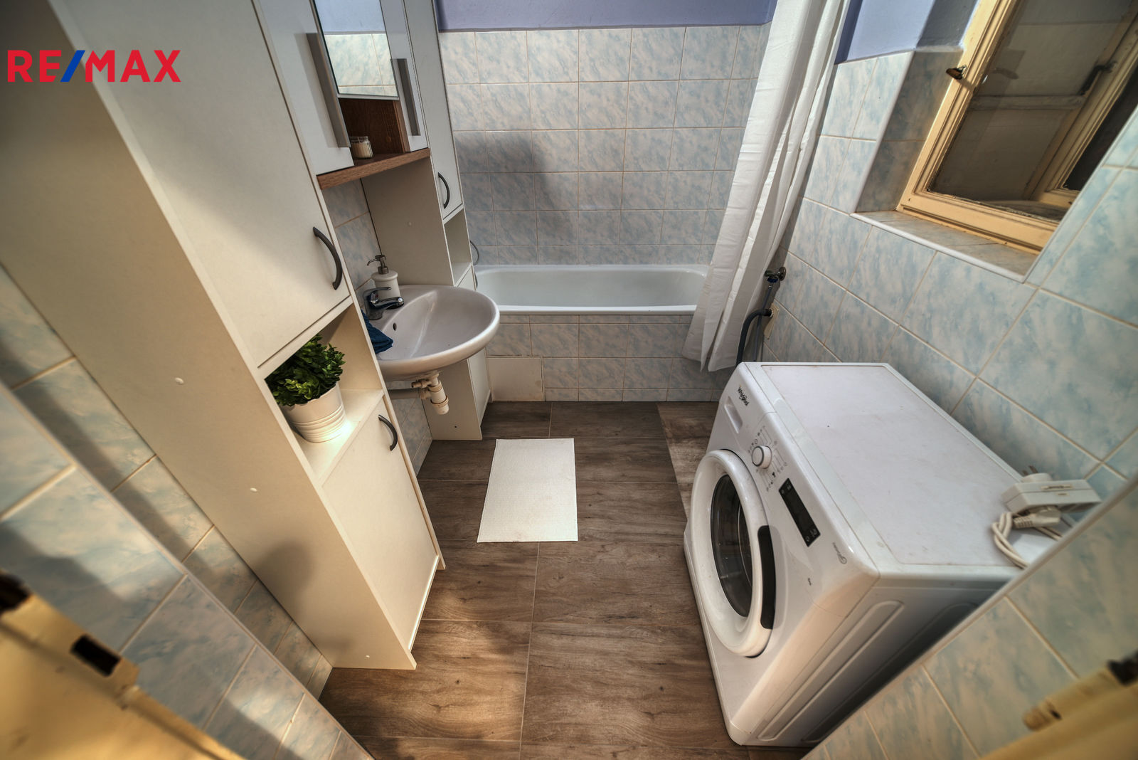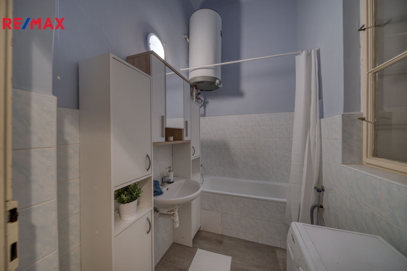 Další úložný prostor nabízí světlík a kumbál na chodbě. V koupelně je vana, umyvadlo, koupelnový nábytek, pračka a bojler. WC je oddělené.