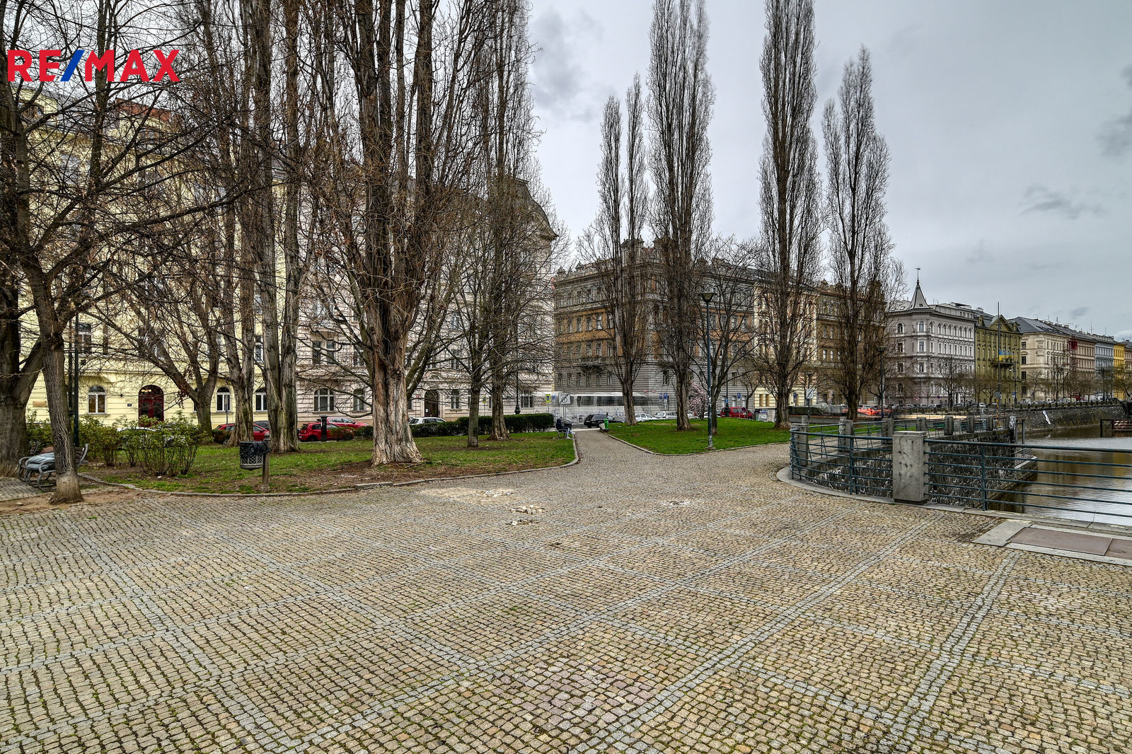 Byt se nachází v 5. nadzemním podlaží, díky tomu jsou okna dostatečně vysoko a máte zajištěný výhled po celý rok. V nižších patrech brání výhledu vzrostlé stromy na nábřeží. Jedná se o nejlepší byt (výhled a velikost) z celého činžovního domu. V domě je výtah v mezipatrech.