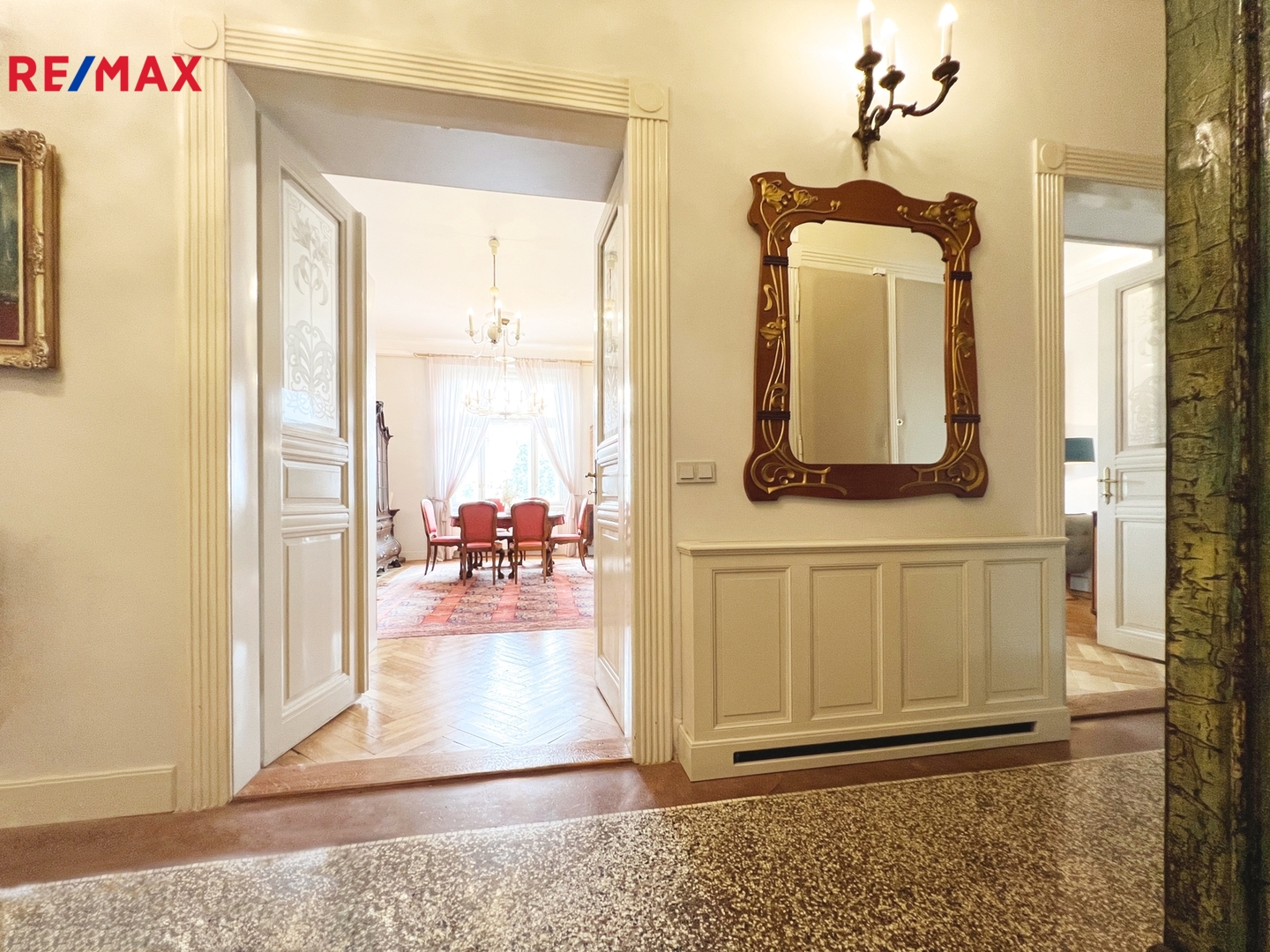 • Klimatizace, zabezpečovací systém, ambientní osvětlení, původní parkety, vysoké téměř čtyř metrové stropy