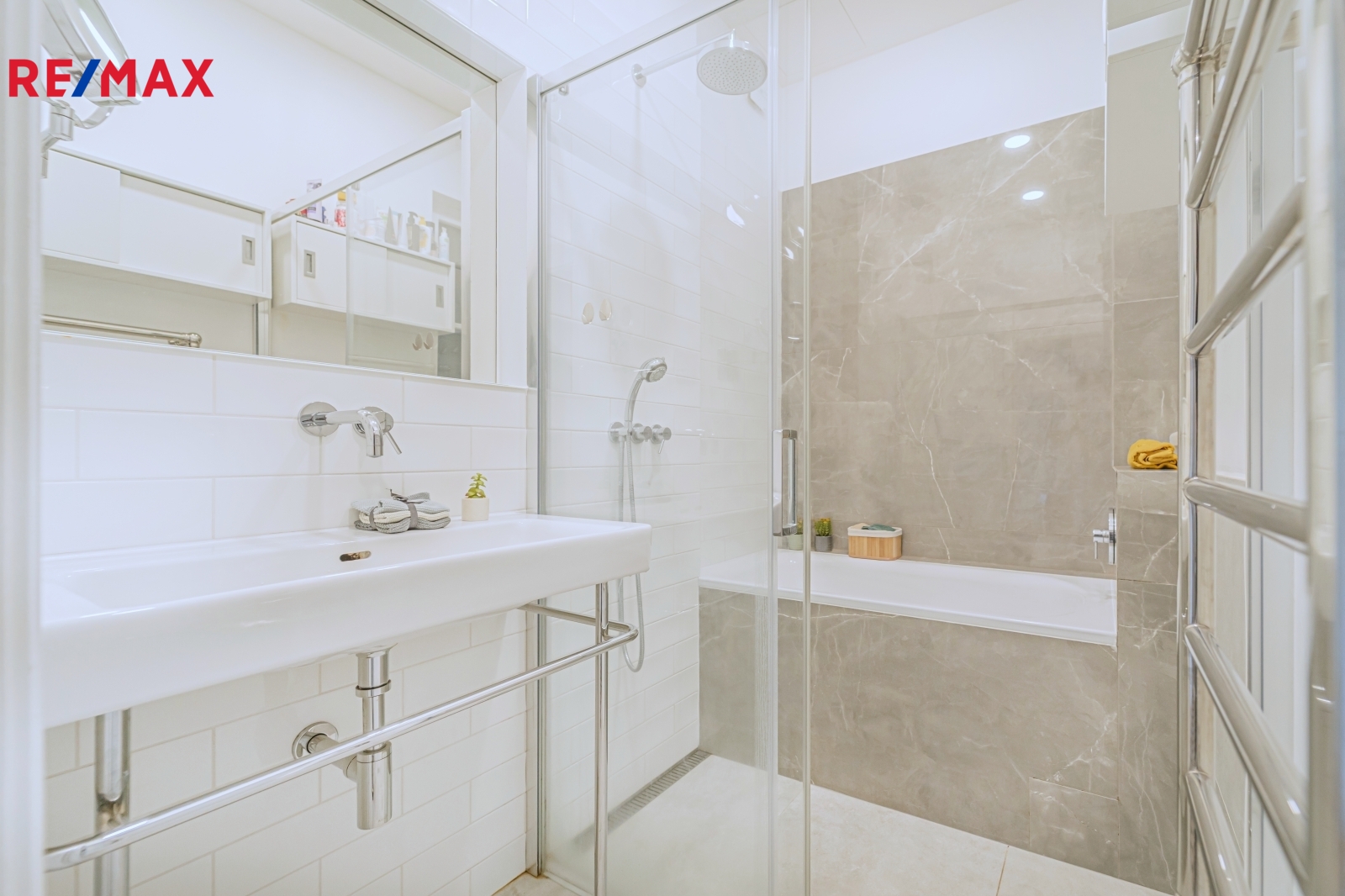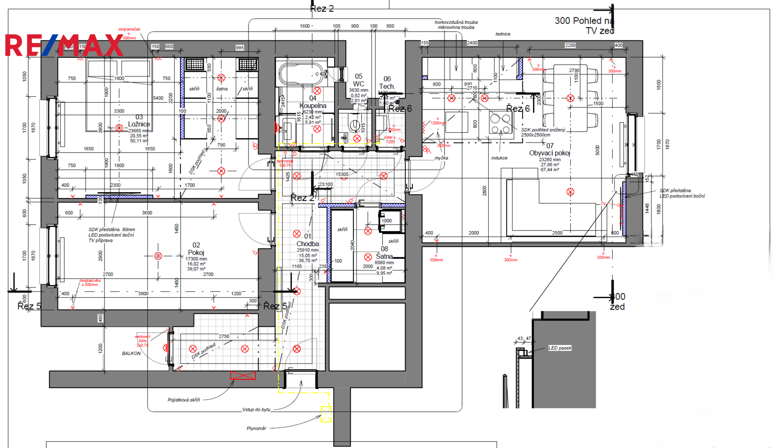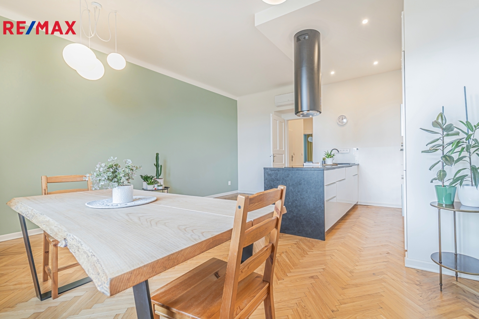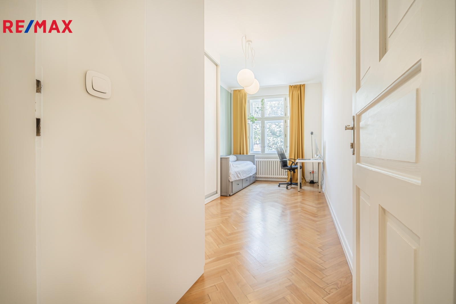 Bytová jednotka v osobním vlastnictví prošla v r. 2018 kompletní, ale velmi citlivou rekonstrukcí s důrazem na zachování ducha nemovitosti a zároveň na propojení původních prvků s moderním bydlením. Renovace dřevěných parketových podlah, interiérových dveří s obložkovými zárubněmi z masivního dřeva, nová avšak dobová dřevěná špaletová okna včetně kování s izolačním trojsklem - vše doplněno moderní kuchyňskou linkou s vestavnými spotřebiči, luxusní koupelnou či klimatizací. Obývací pokoj s kuchyní je orientován na východ s výhledem na Vltavu a Vyšehrad. Okna ložnic pak na západ, do vnitrobloku. Na první pohled Vás zaujme mnoho na míru zhotovených úložných prostor v podobně vestavných skříní, polic a šatníku, včetně průchozí šatny v ložnici. Velkou výhodou je uzavíratelná komora s regálovým systémem, kde je umístěna pračka a sušička. Technická místnost s plynovým kotlem, jenž představuje vlastní zdroj topení a ohřevu TUV je zcela oddělena.