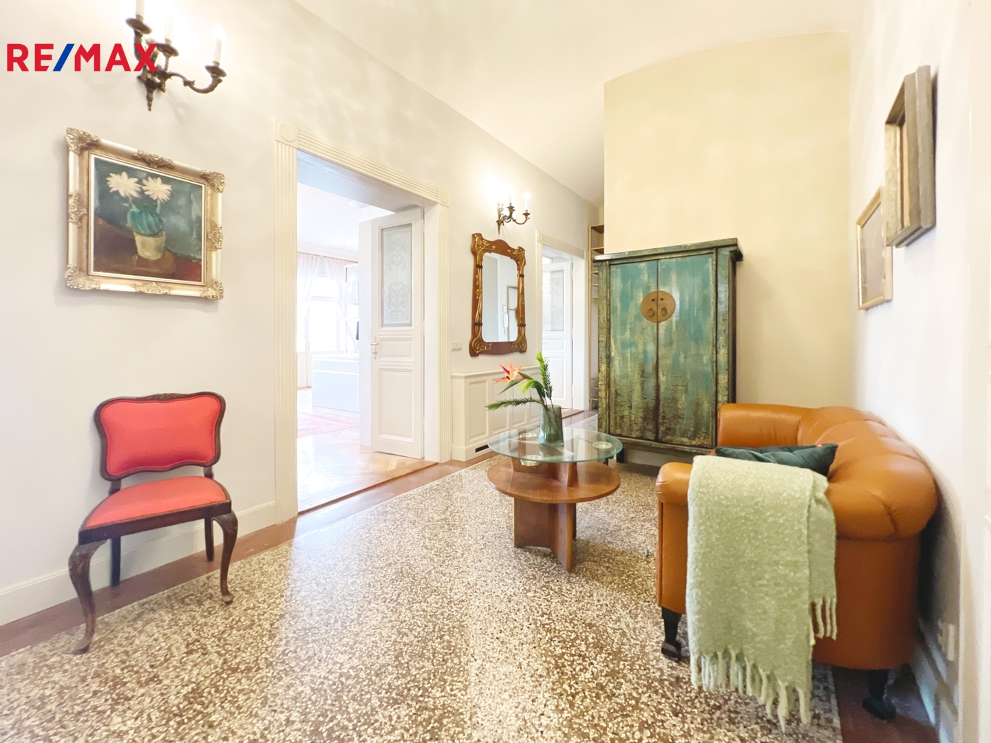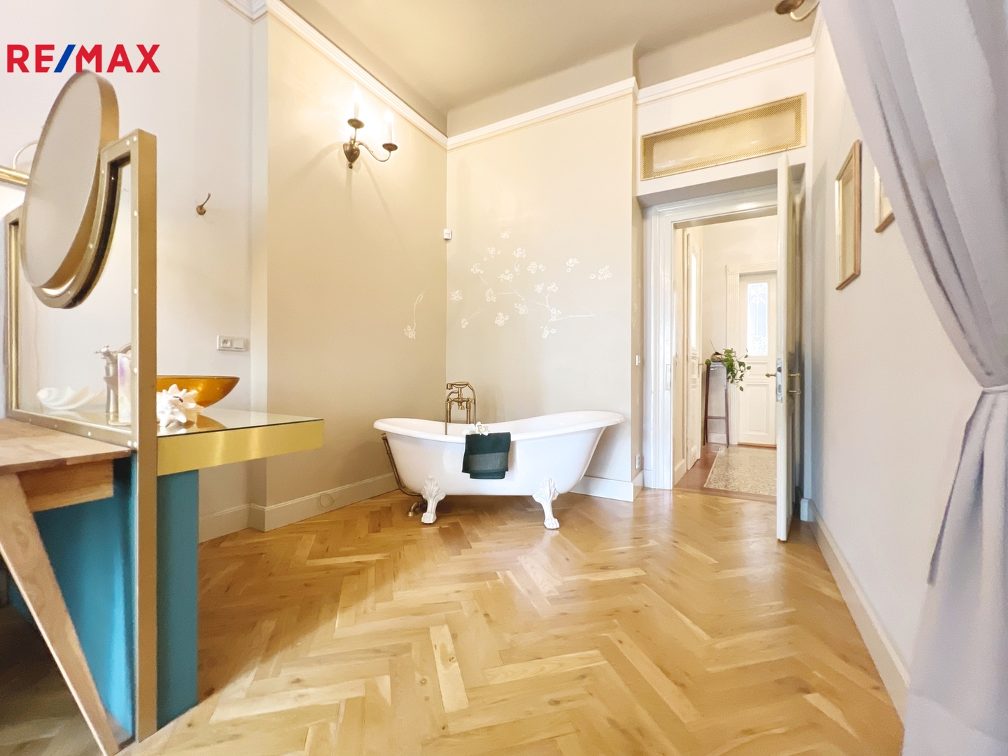 • Klimatizace, zabezpečovací systém, ambientní osvětlení, původní parkety, vysoké téměř čtyř metrové stropy