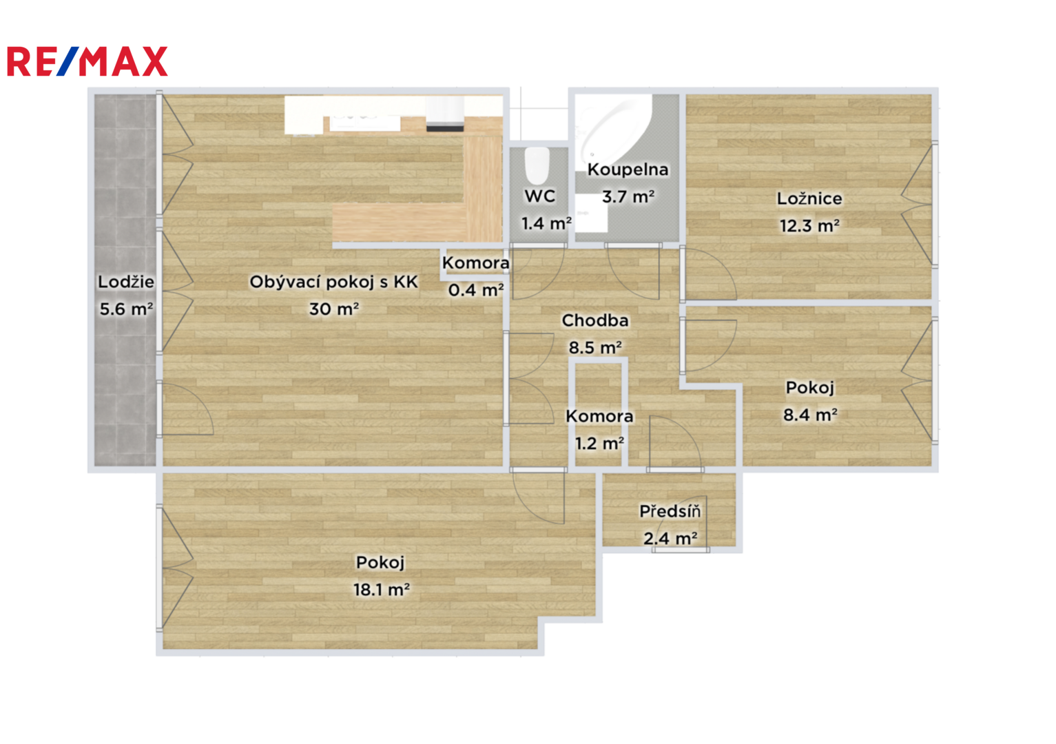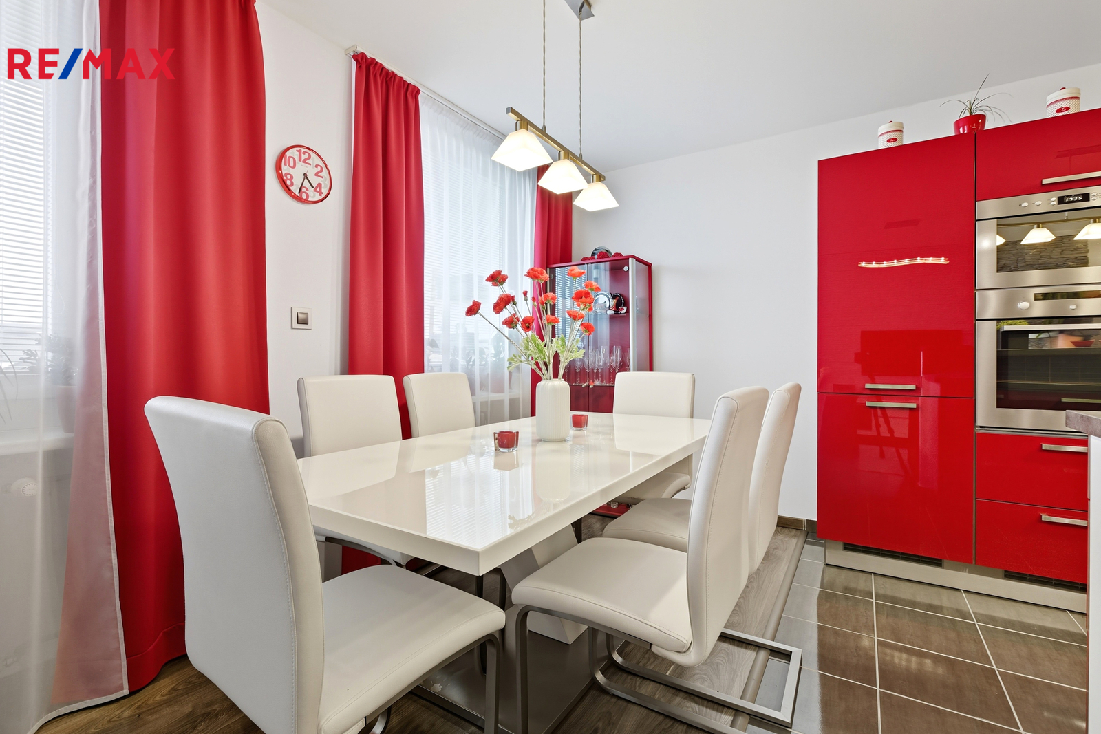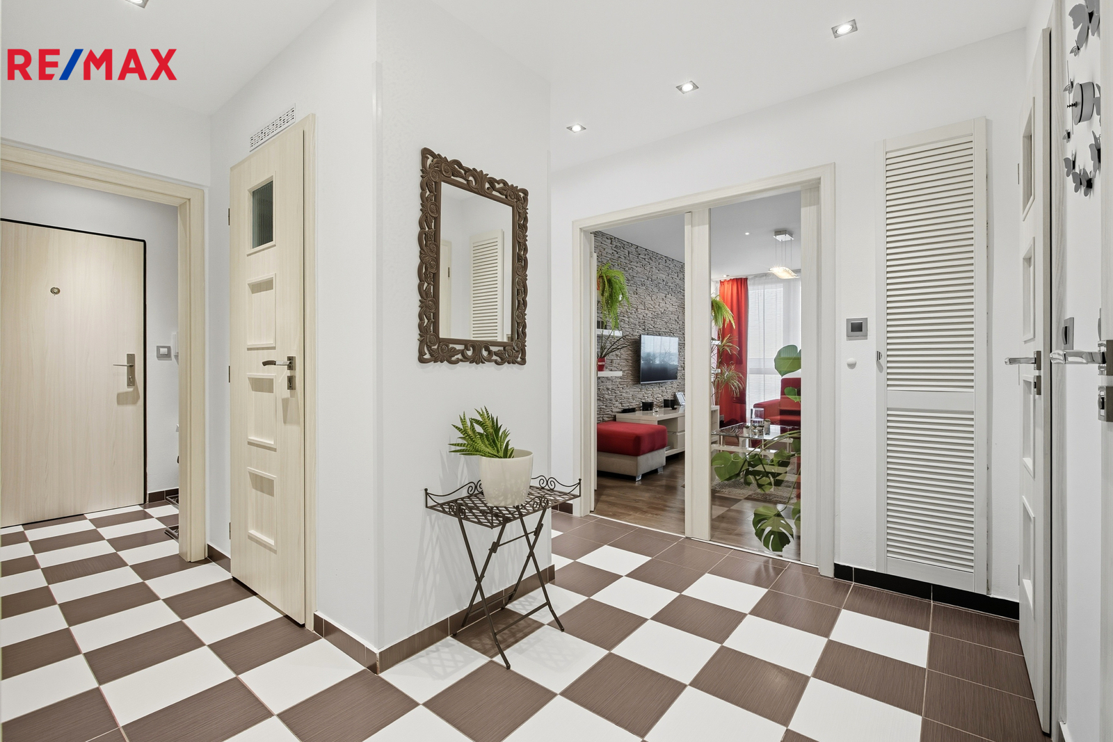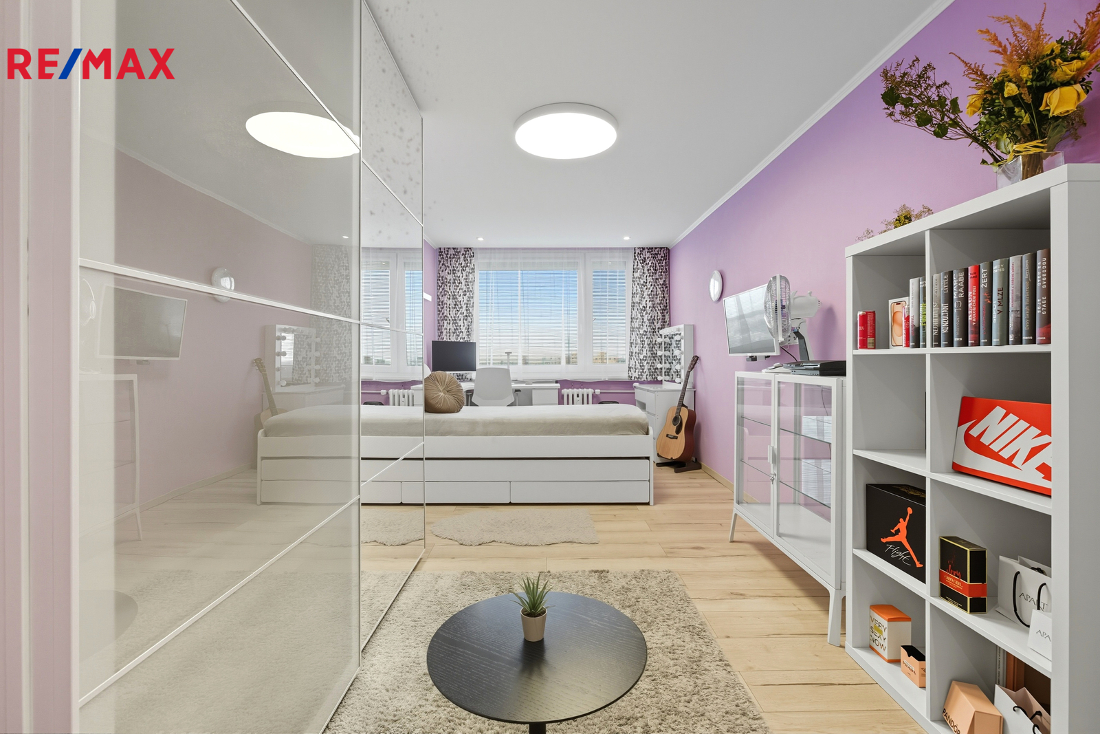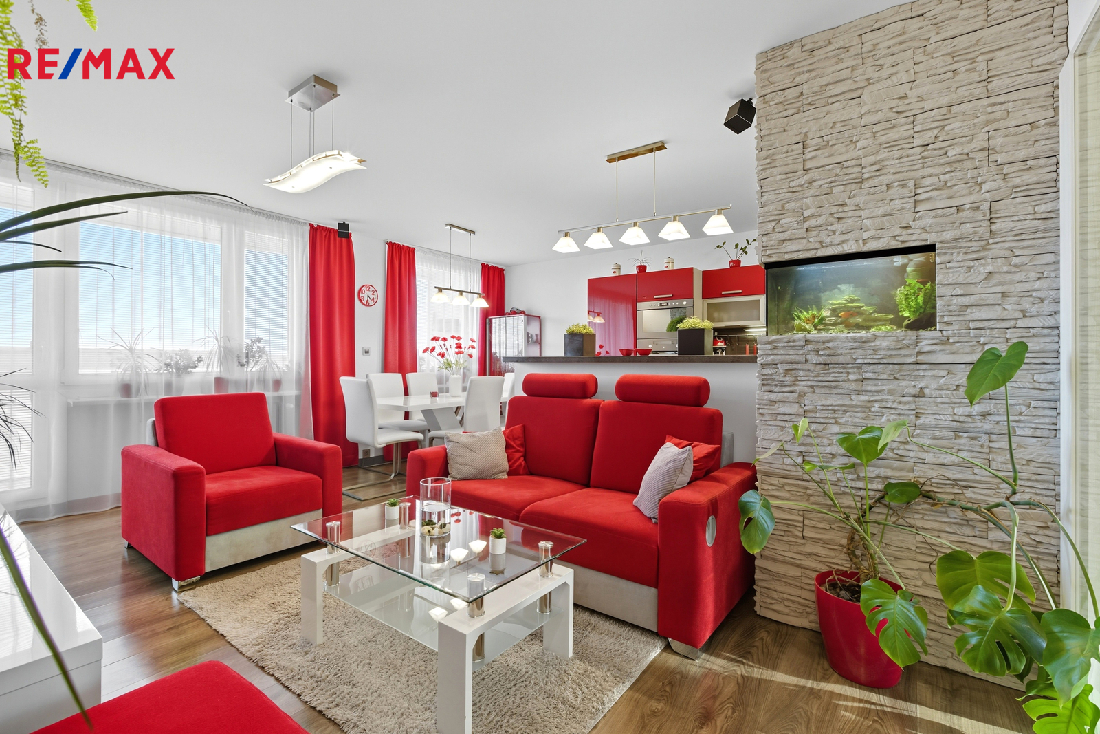 Dispozici bytu tvoří obývací pokoj s kuchyňským koutem a vstupem na lodžii, tři samostatné ložnice, koupelna s vanou, samostatné WC, dvě komory, chodba a předsíň. Byt prošel v roce 2012 kompletní rekonstrukcí, během které došlo ke zděnému vybudování jádra, výměně elektroinstalace v kuchyni, koupelně, WC a obývacím pokoji, položení nových podlah, nové omítky, výmalbě, stropních podhledů a instalaci kompletně vybavené kuchyňské linky. V roce 2021 byl kompletně zrekonstruován pokoj orientovaný východ. Na celé západní straně bytu a jednoho pokoje na východní straně jsou na oknech el. ovládané předokenní rolety. Vytápění i ohřev vody jsou zajištěny centrálně v domě.
