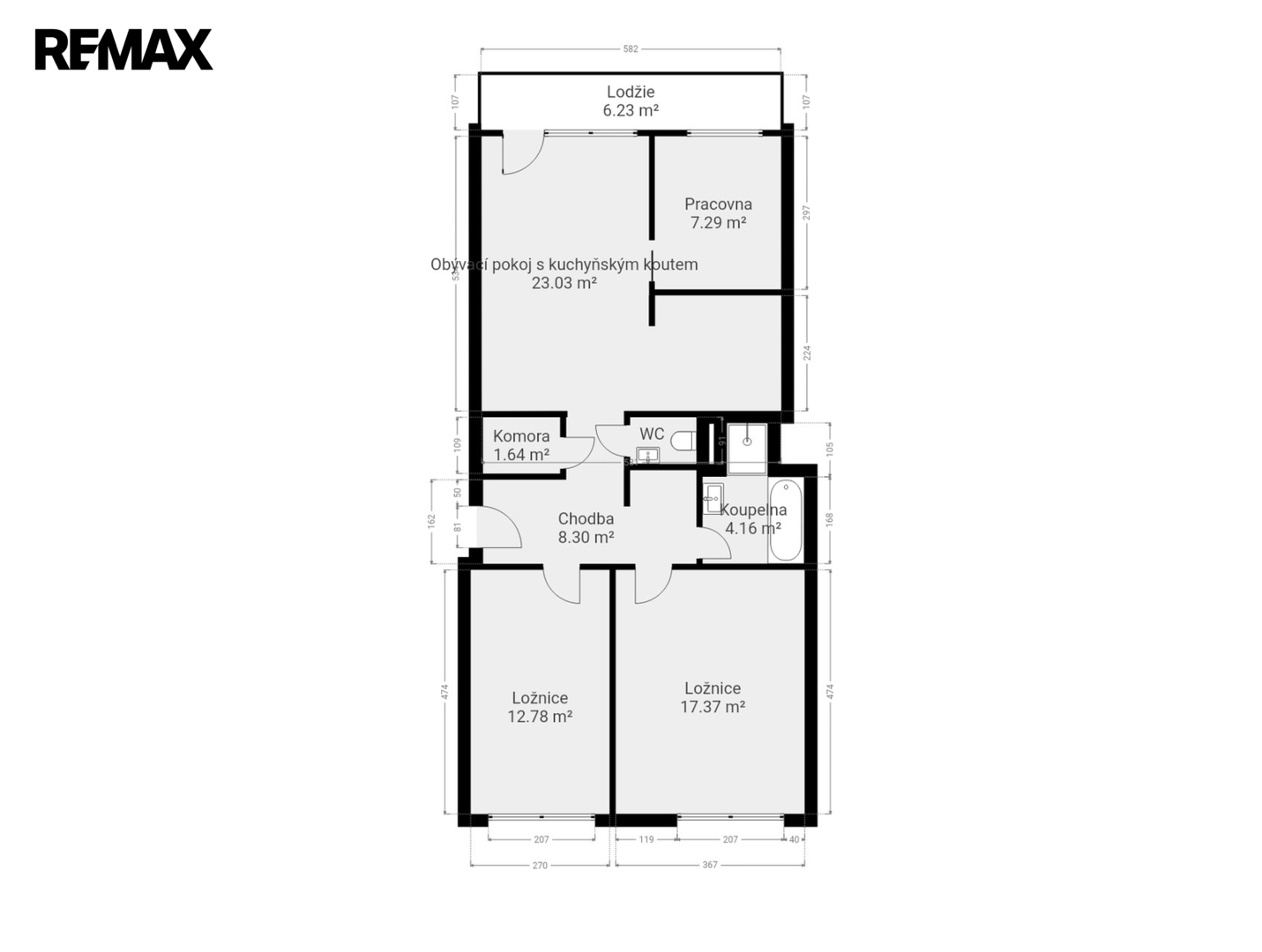 dispozice 4+kk, celková plocha 83 m²