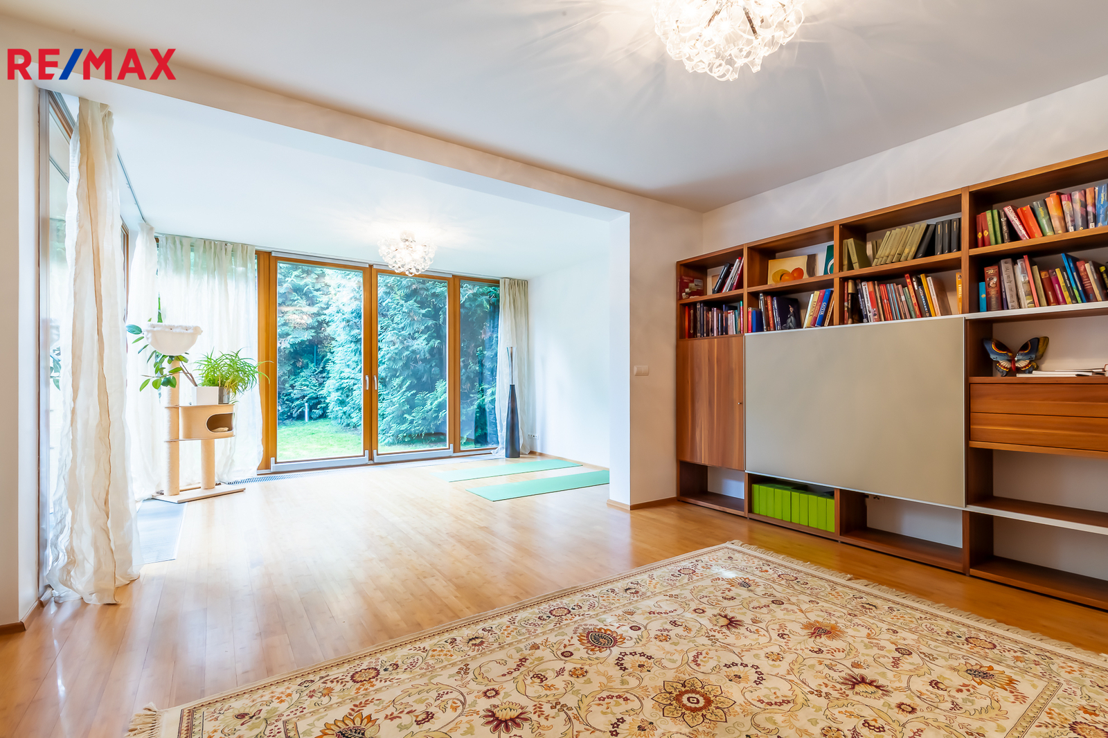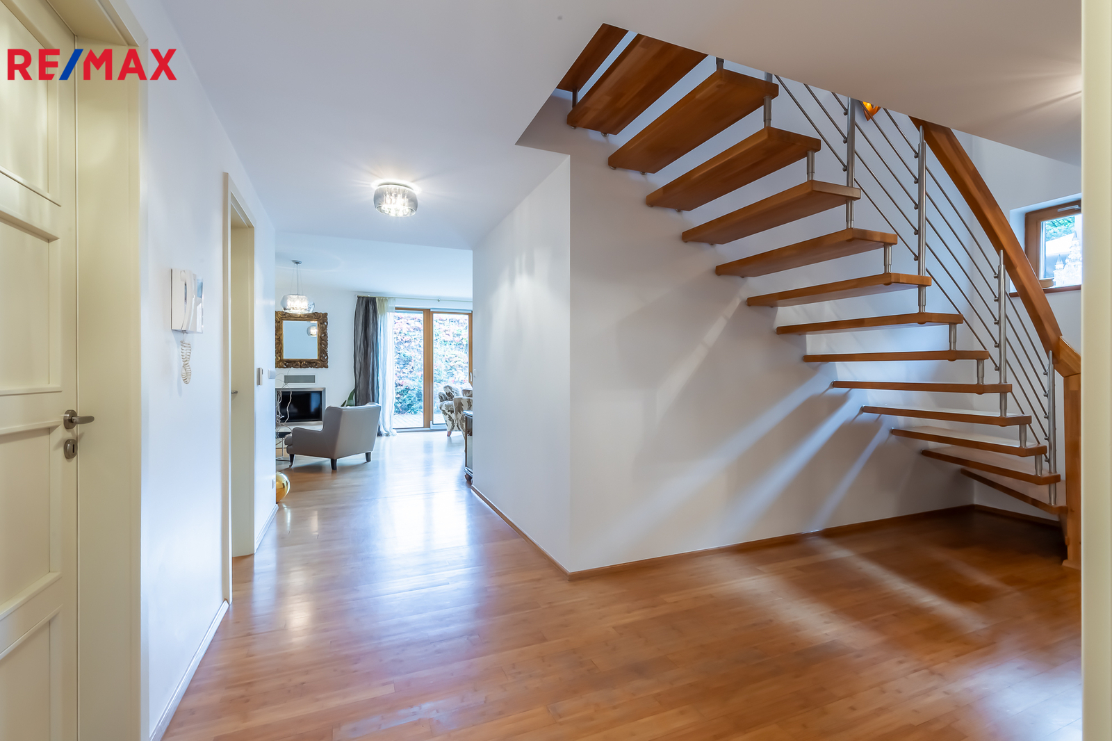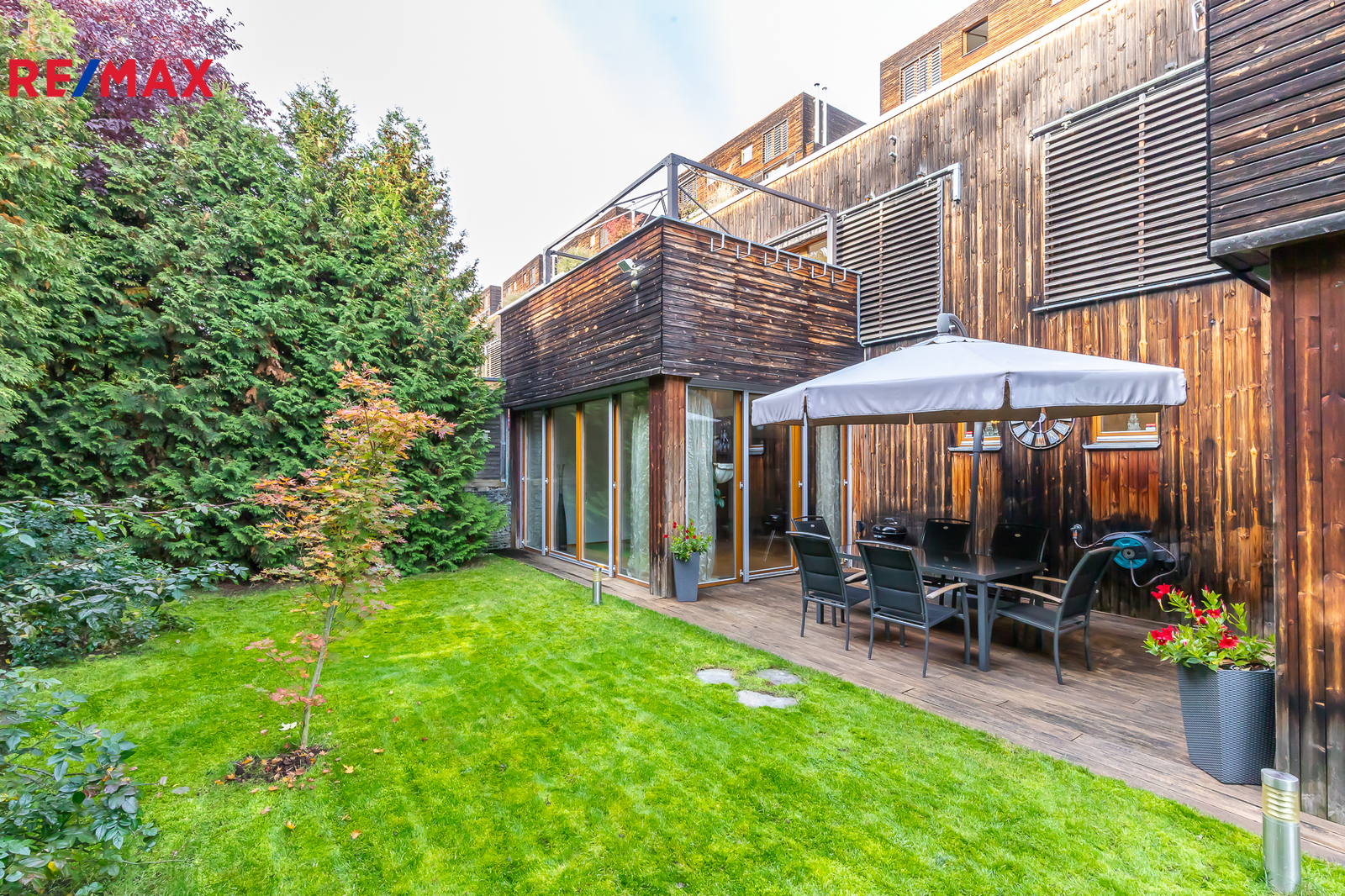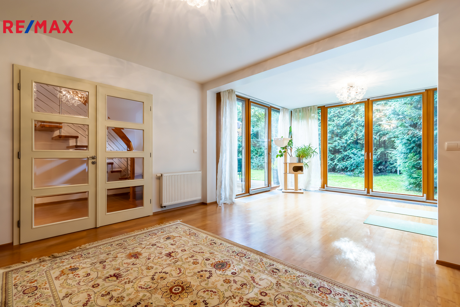Dům se nachází ve vilové čtvrti Košíře, obklopené zelení, v blízkosti parků Cibulka a Vidoule – ideální pro procházky i sportovní aktivity.