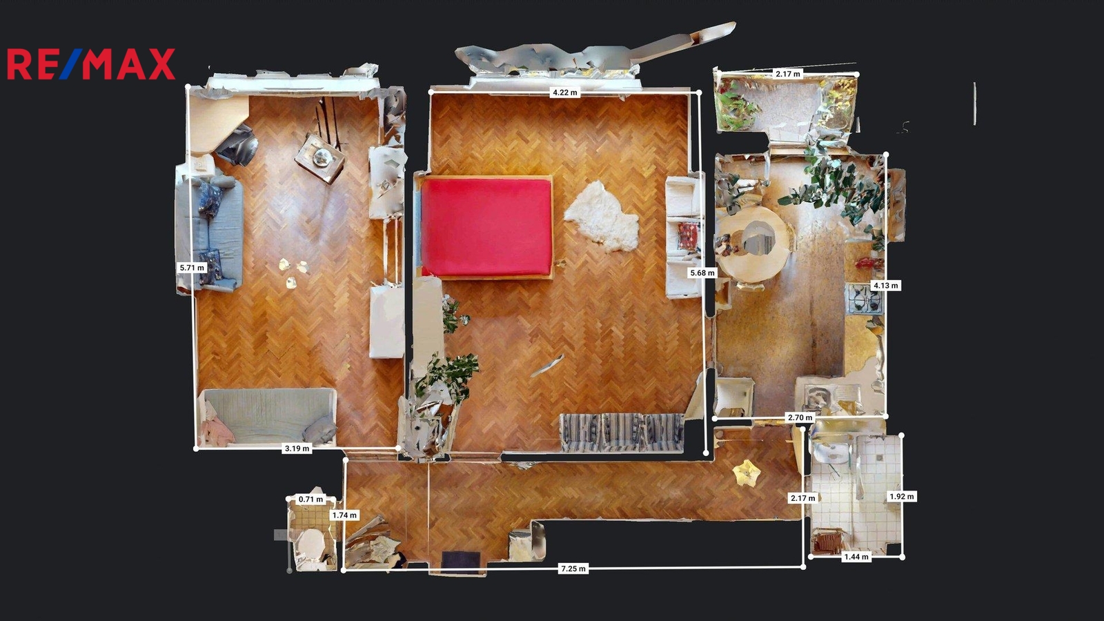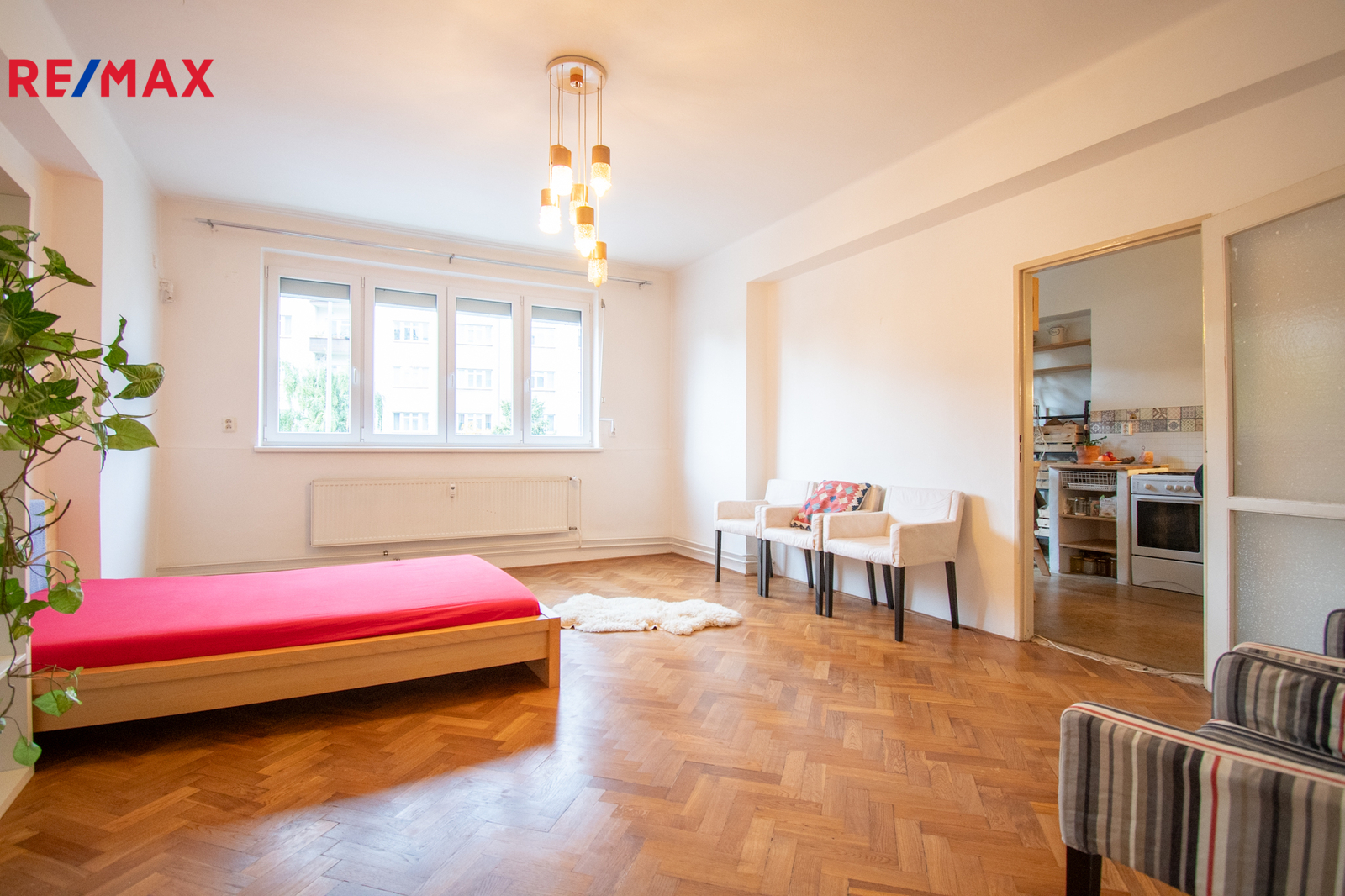 Dispozice bytu zahrnuje prostornou vstupní chodbu, obývací pokoj navazující na kuchyň, ložnici se samostatným vstupem, koupelnu, samostatnou toaletu a komoru. K bytu náleží sklepní kóje, v domě je možnost využít kočárkárny/kolárny a sušárny. Výtah je bezbariérový. Renovace fasády, oken a předokeních žaluzií 2021.