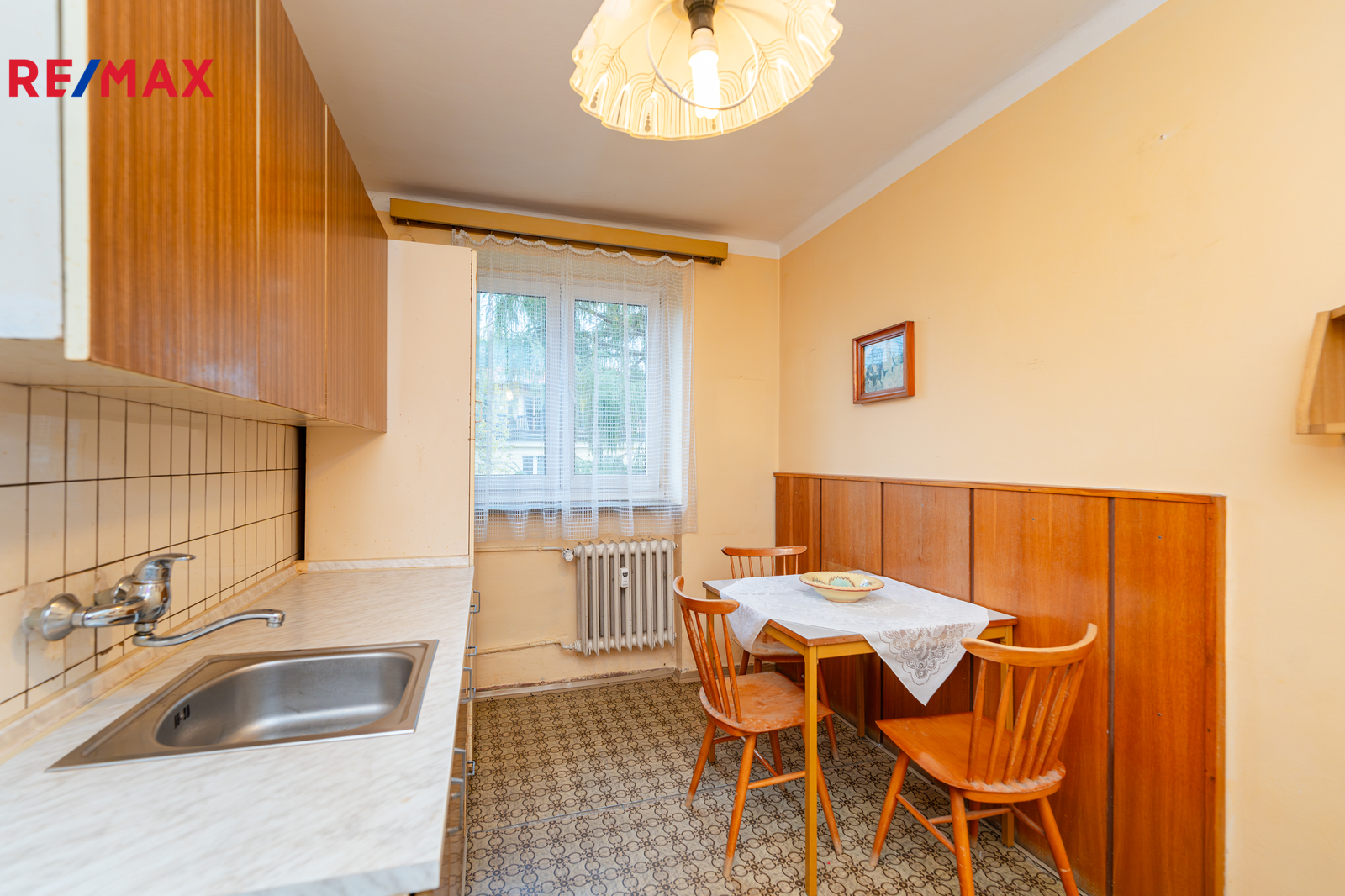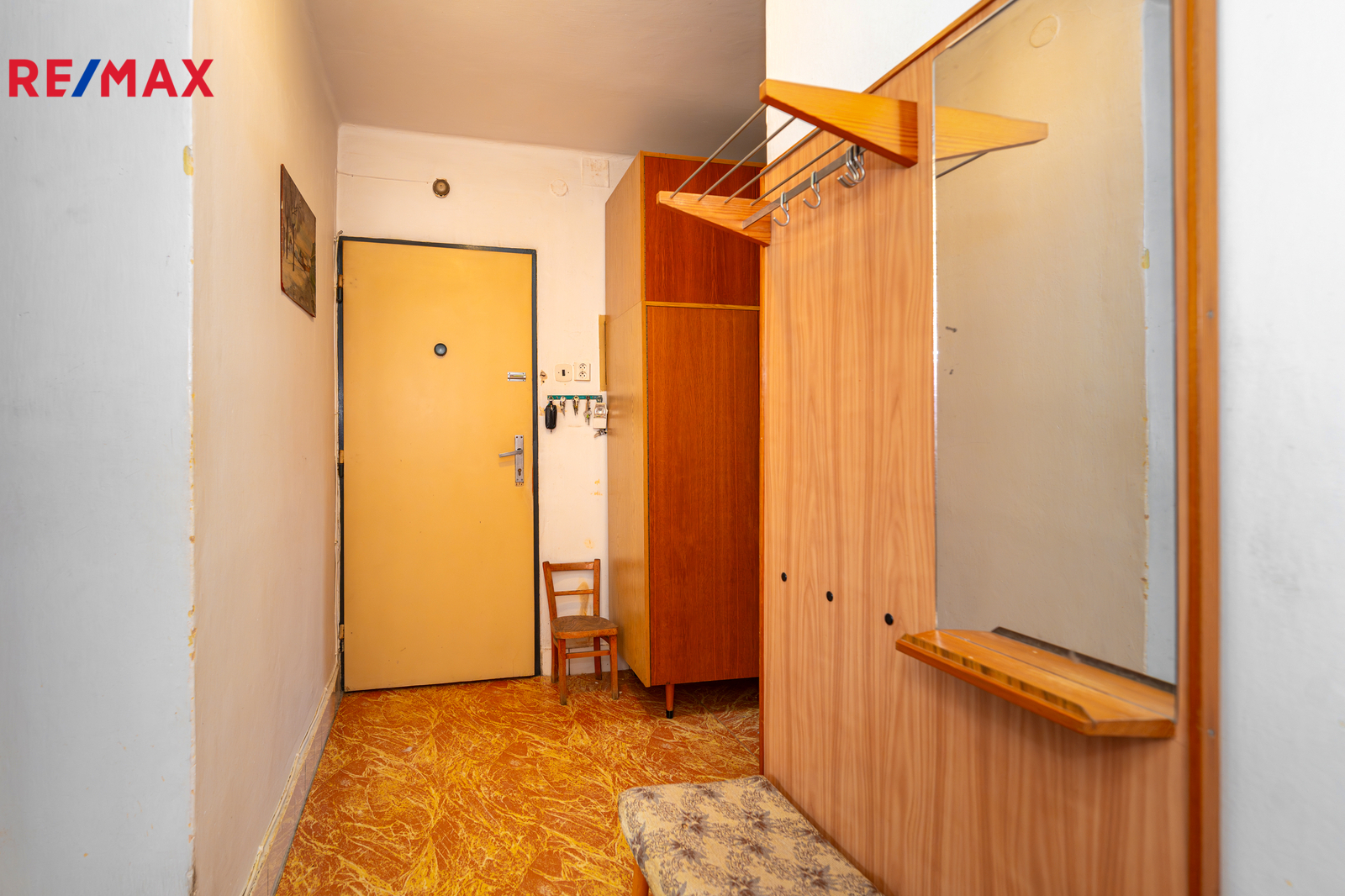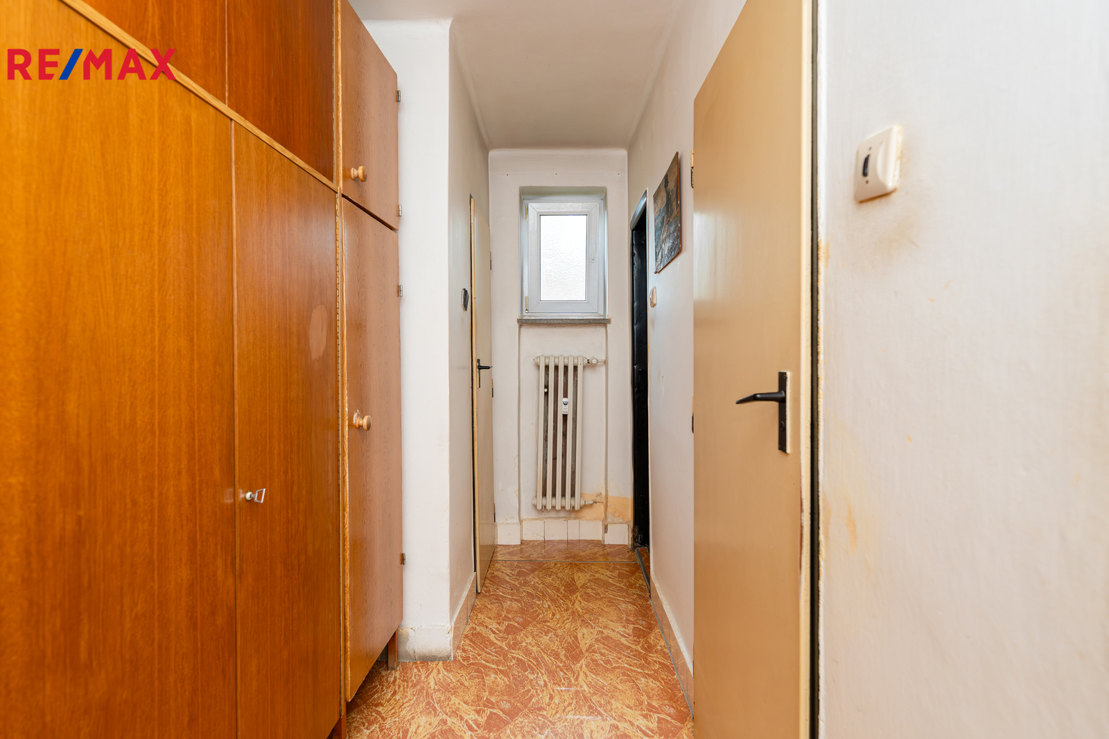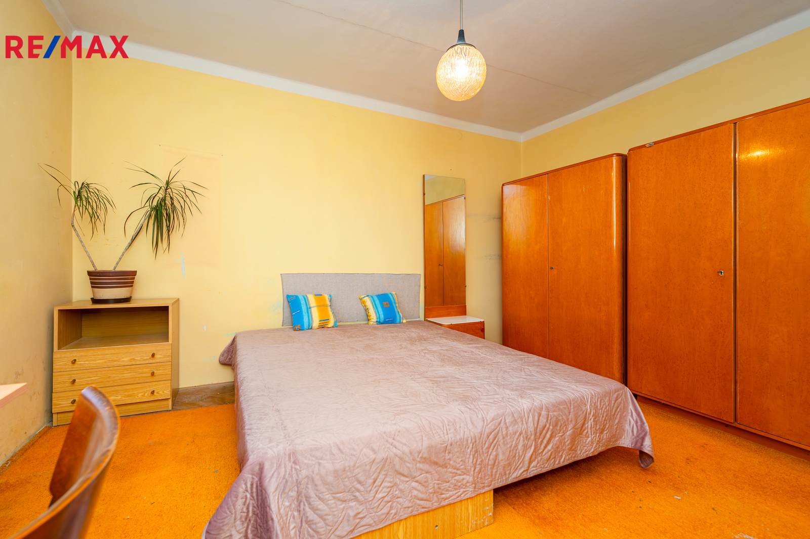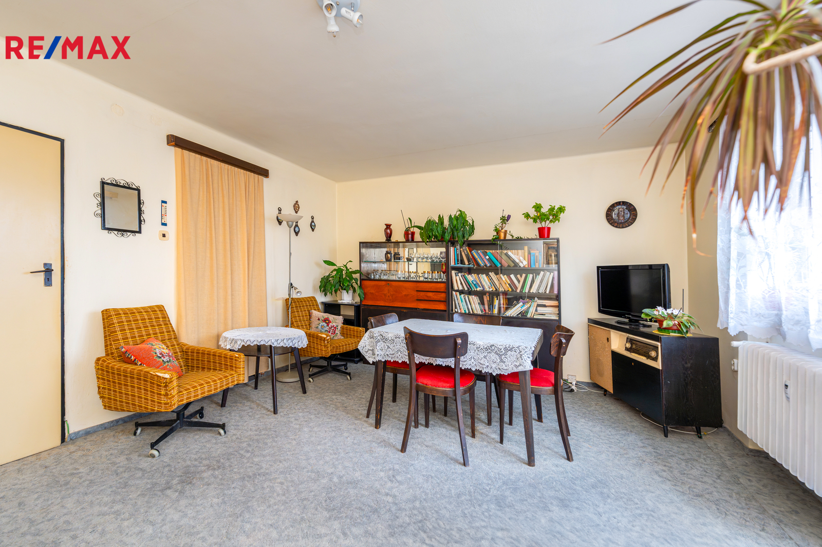 Jedná se o byt z 50. let, který byl celou dobu v rukou prvních majitelů. Interiér je pečlivě udržovaný a dá se v tomto stavu nadále užívat, nicméně pro současné standardy bude vhodný k rekonstrukci, která umožní novým majitelům přizpůsobit si prostory podle vlastních představ. Případně i vytvořit novou dispozici 2+kk nebo 3+kk. Ve fotografiích naleznete půdorys i vizualizace s doplněným nábytkem pro lepší představu o možném uspořádání.