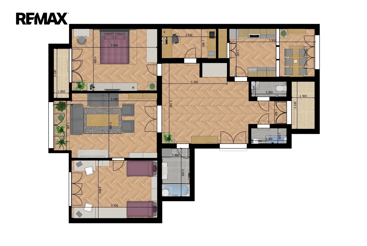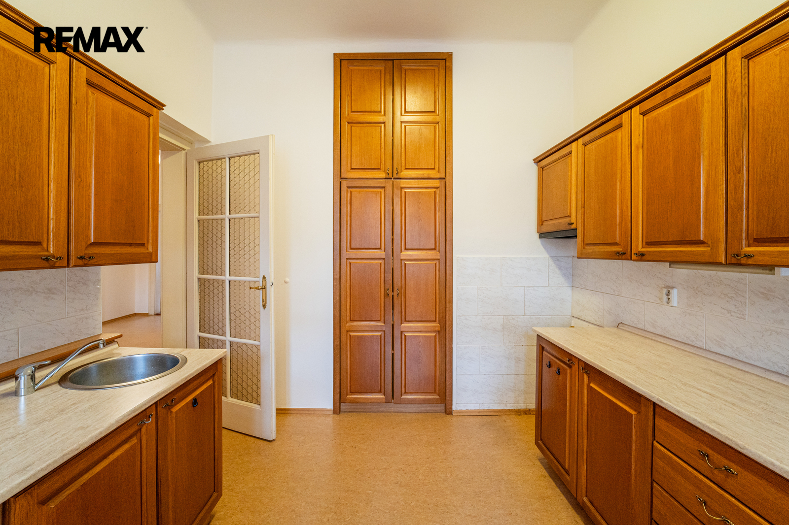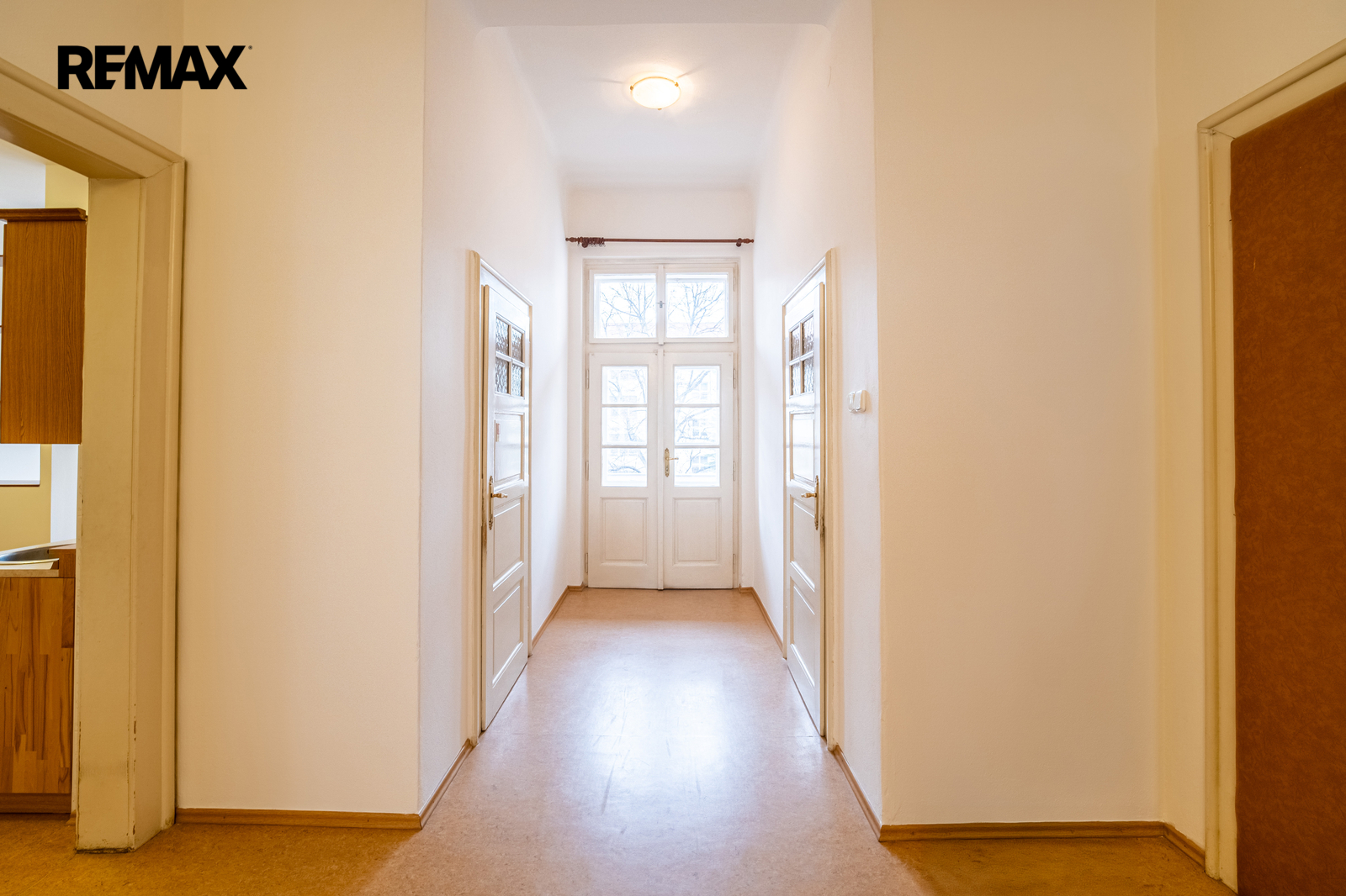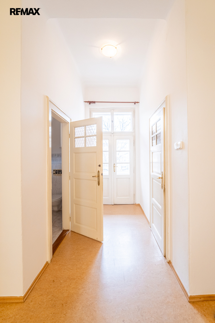 Dispozice nabízí komfortní bydlení i pro náročnější klienty – prostorné místnosti, které dávají dostatek soukromí i variability využití. Najdete zde tři pokoje, prostornou halu, pokojík "pro služebnou", kuchyň a koupelnu. Výhodou jsou dva balkóny, jeden do ulice a druhý do klidného vnitrobloku. Potěší zde i prostorný sklepní prostor o 21 m2, sklepní prostory prošly kompletní rekonstrukcí v roce 2020.