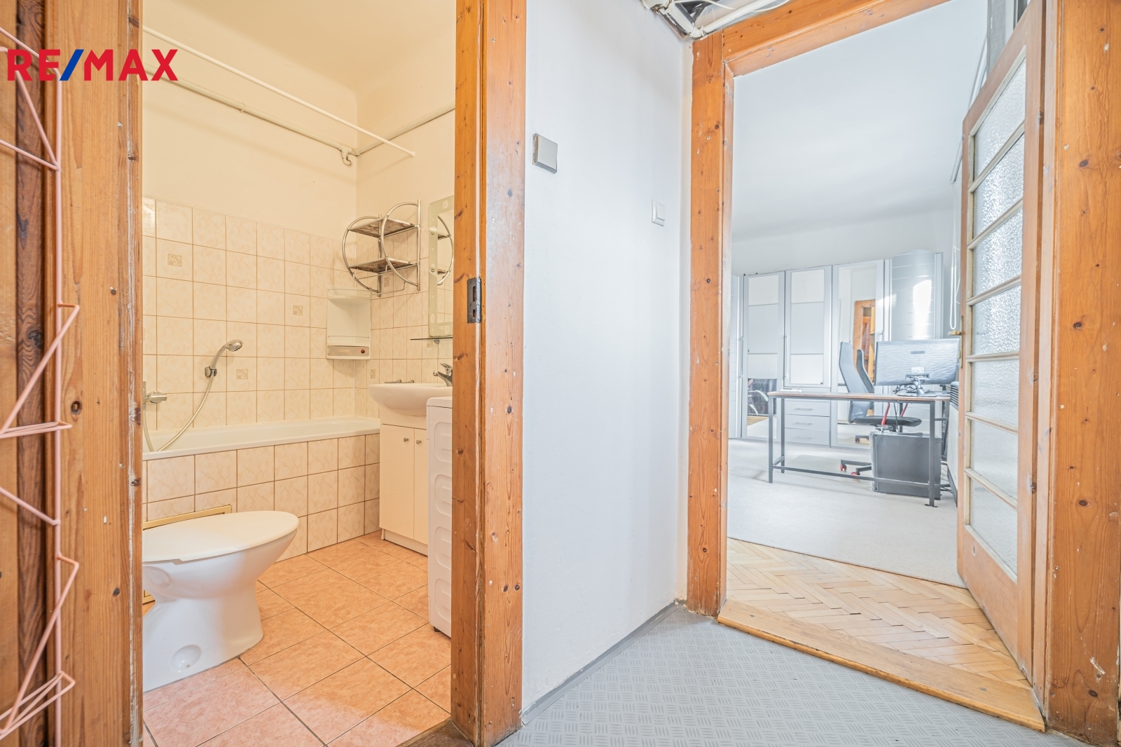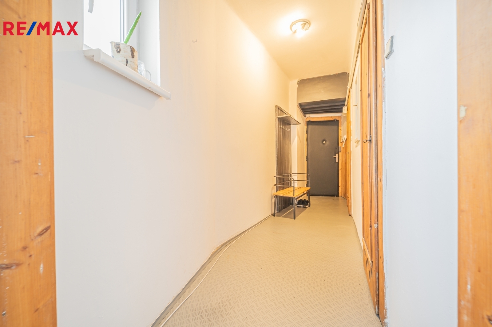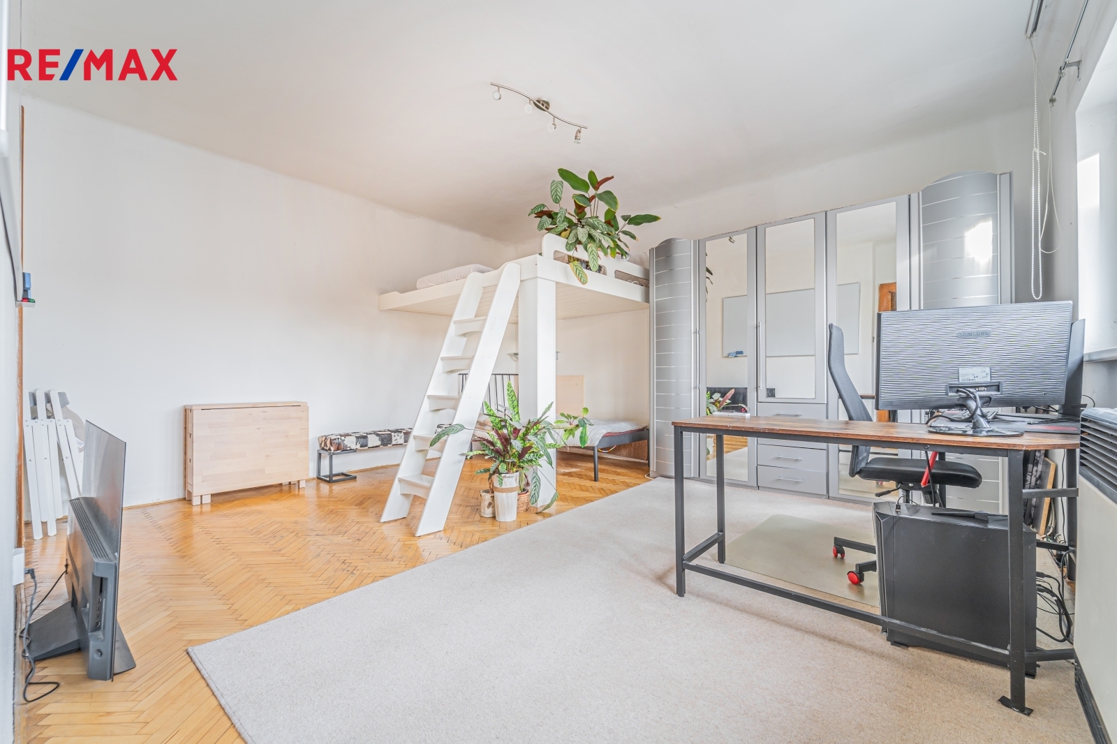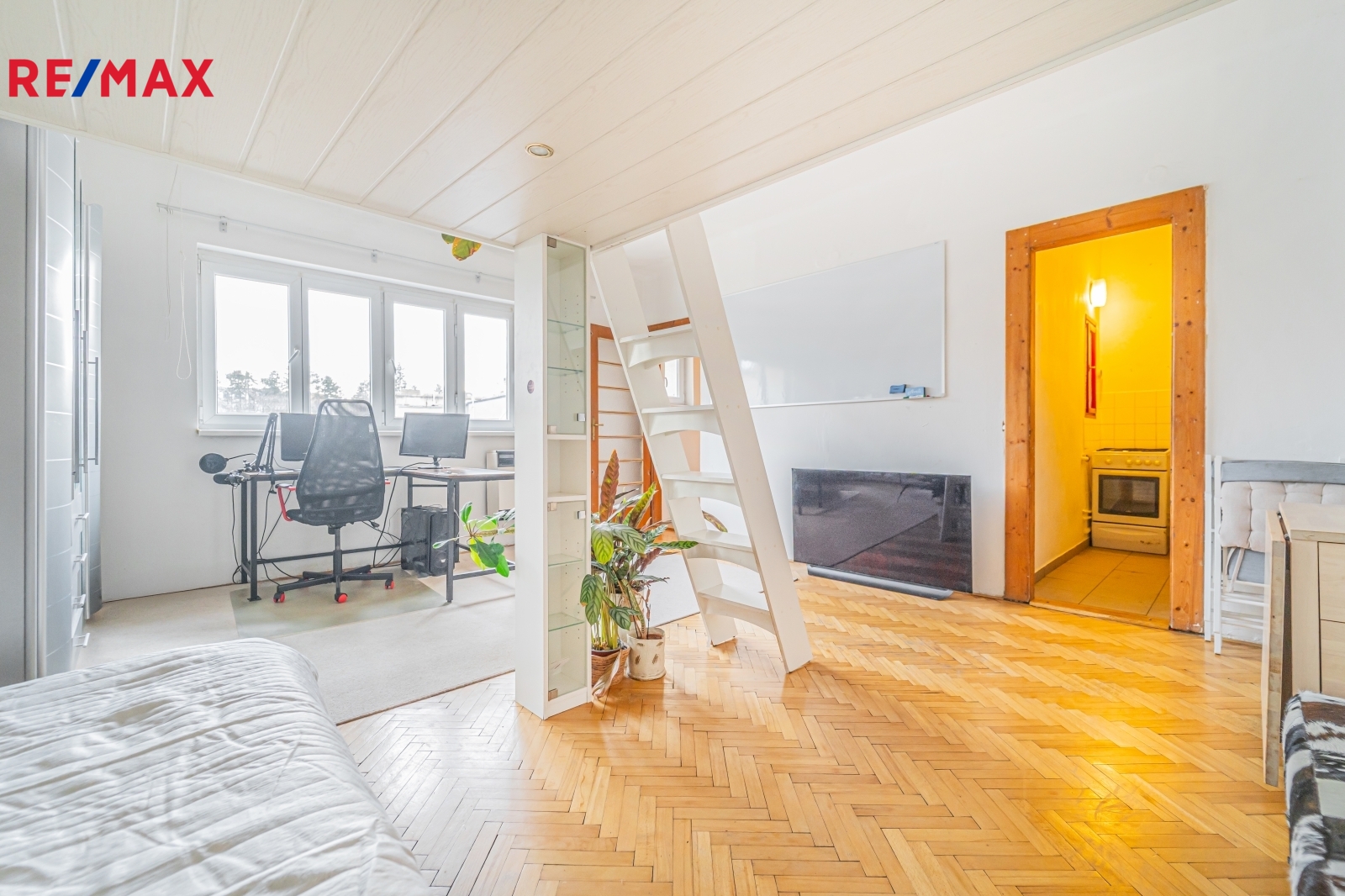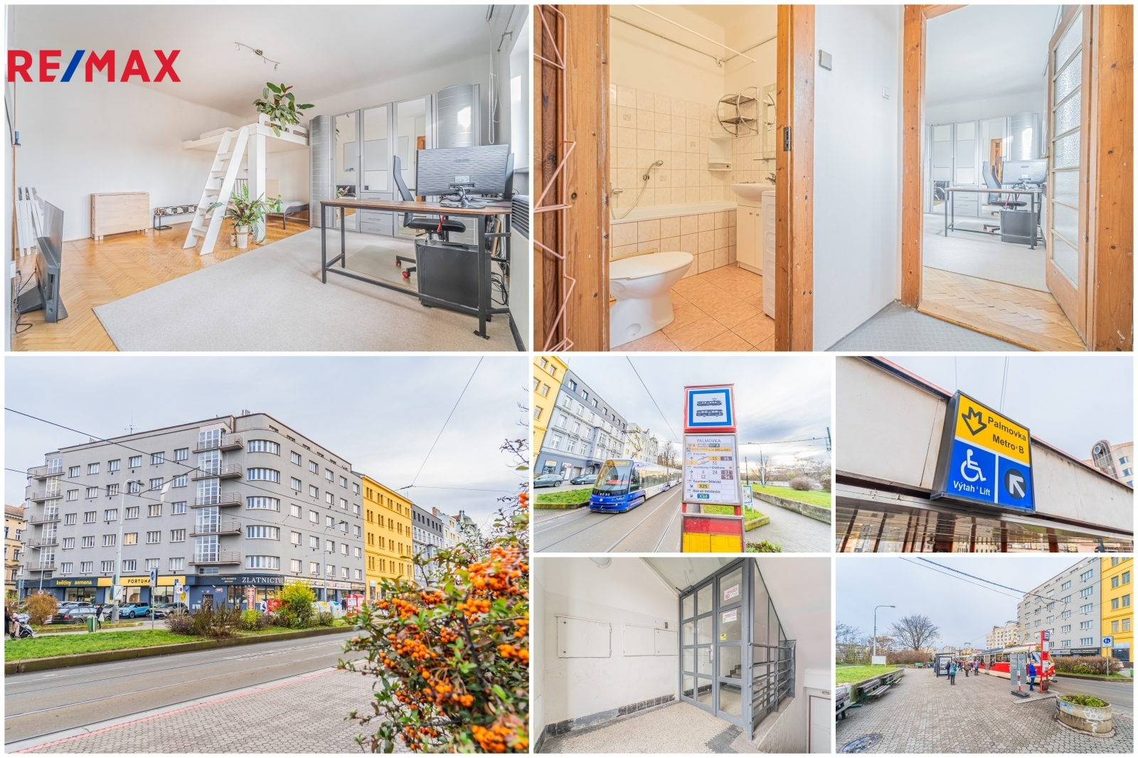 Byt prošel v průběhu let částečnou rekonstrukcí a je ve funkčním, udržovaném stavu. Ačkoli se dům nachází přímo u stanice metra Palmovka, okna bytu (plastová) jsou orientována na jihovýchod do tichého vnitrobloku. Další výhodou je vestavěné spací patro v obývacím pokoji a vlastní ohřev vody (plynová karma) a zdroj vytápění (WAW).
