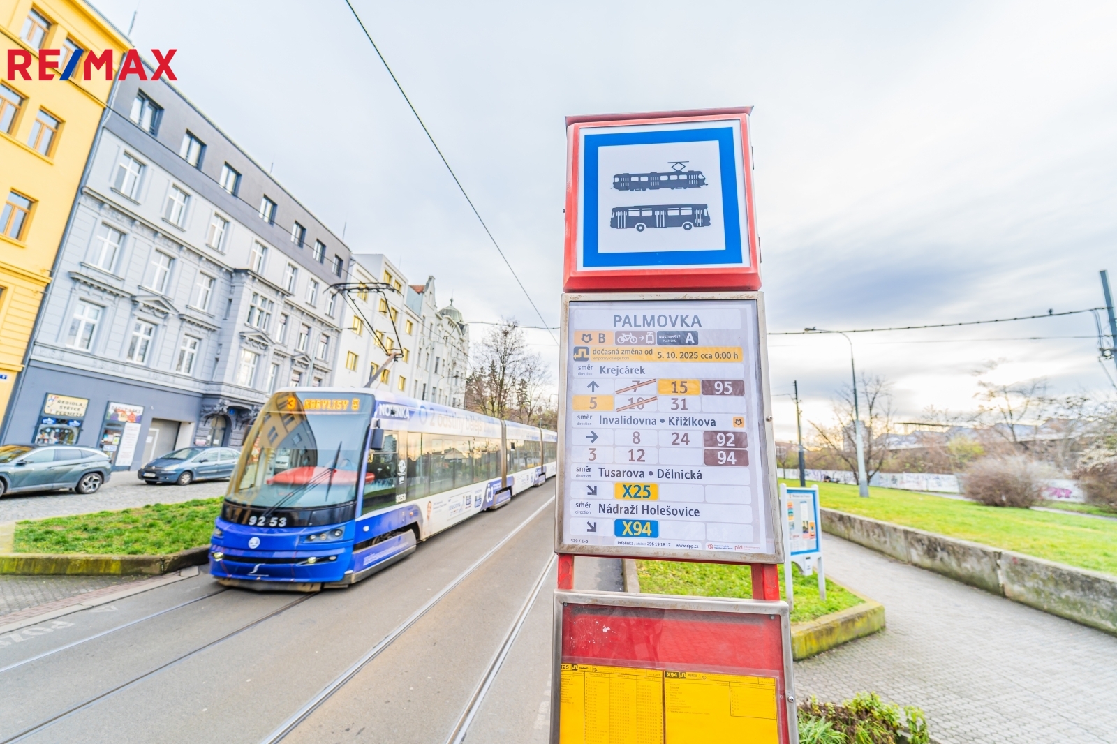 - stanice metra B Palmovka a zastávka tramvaje Palmovka u domu
