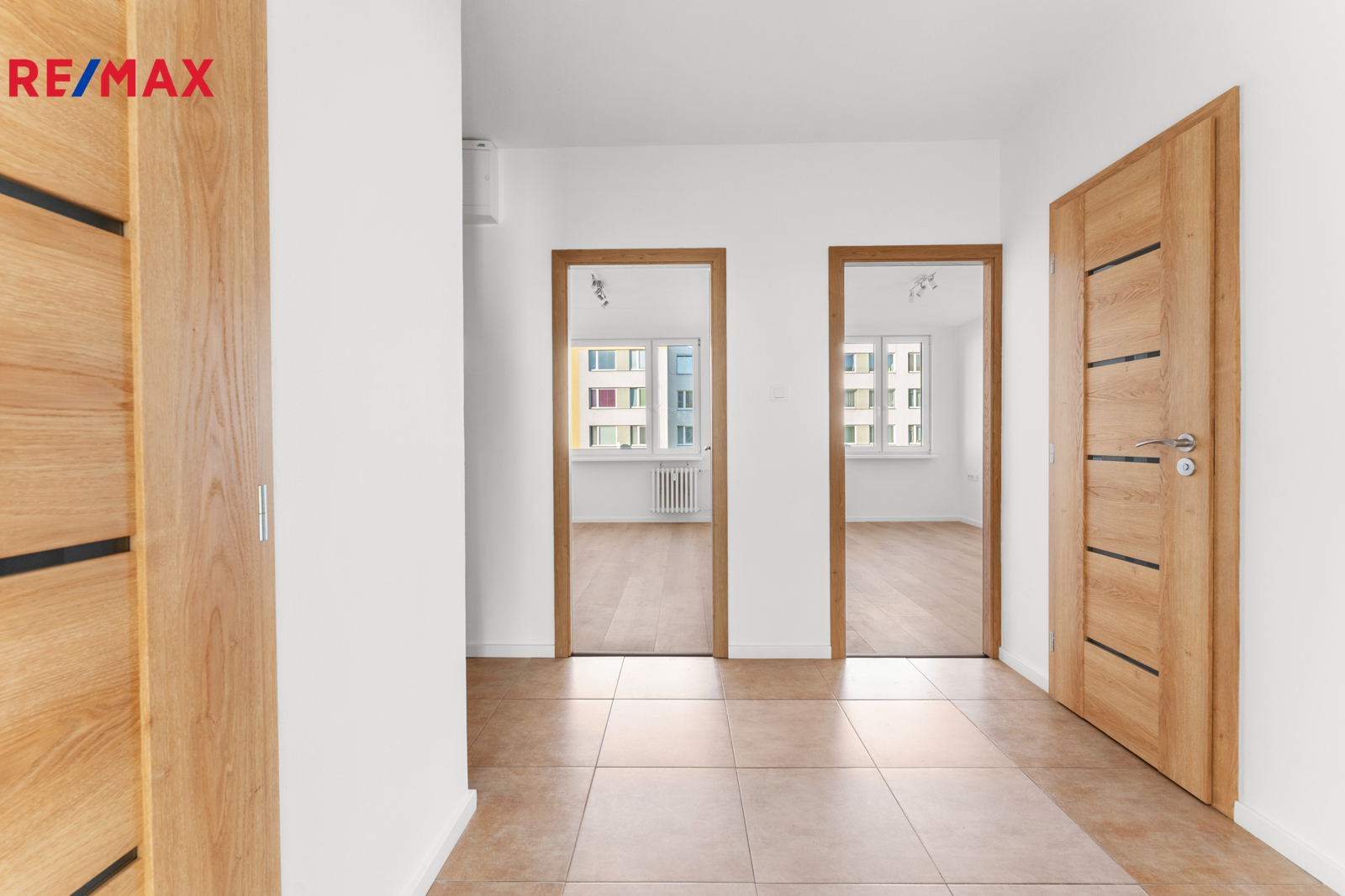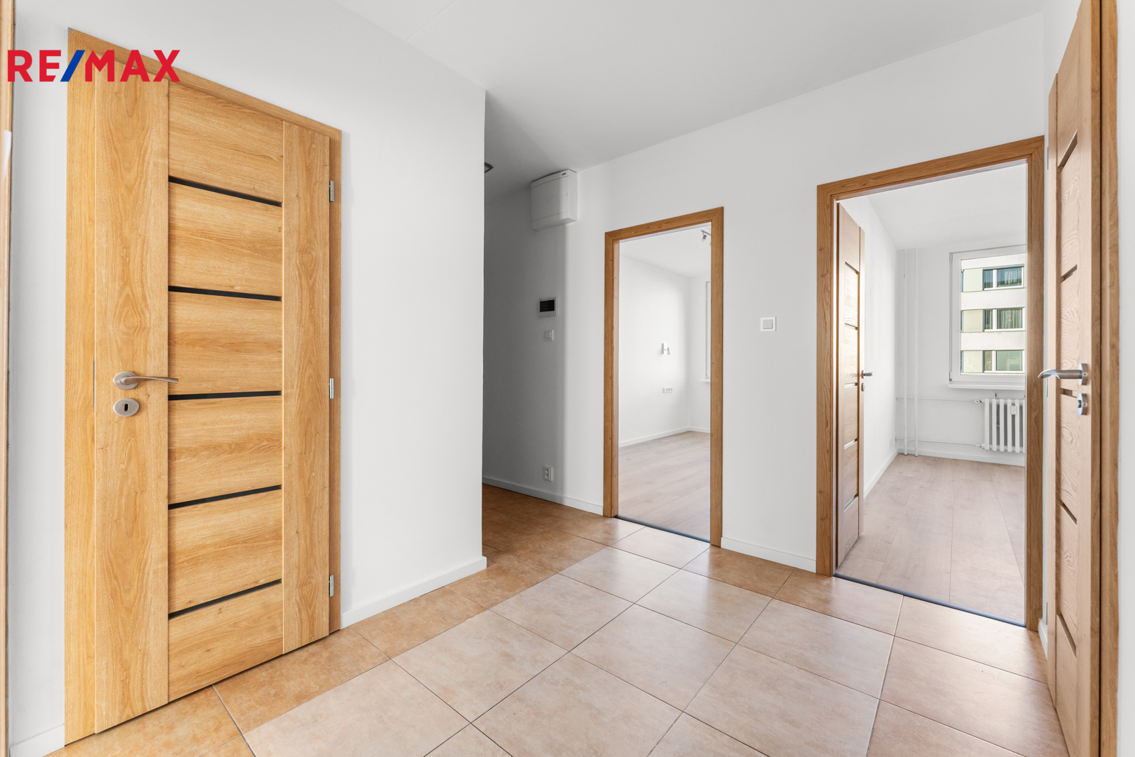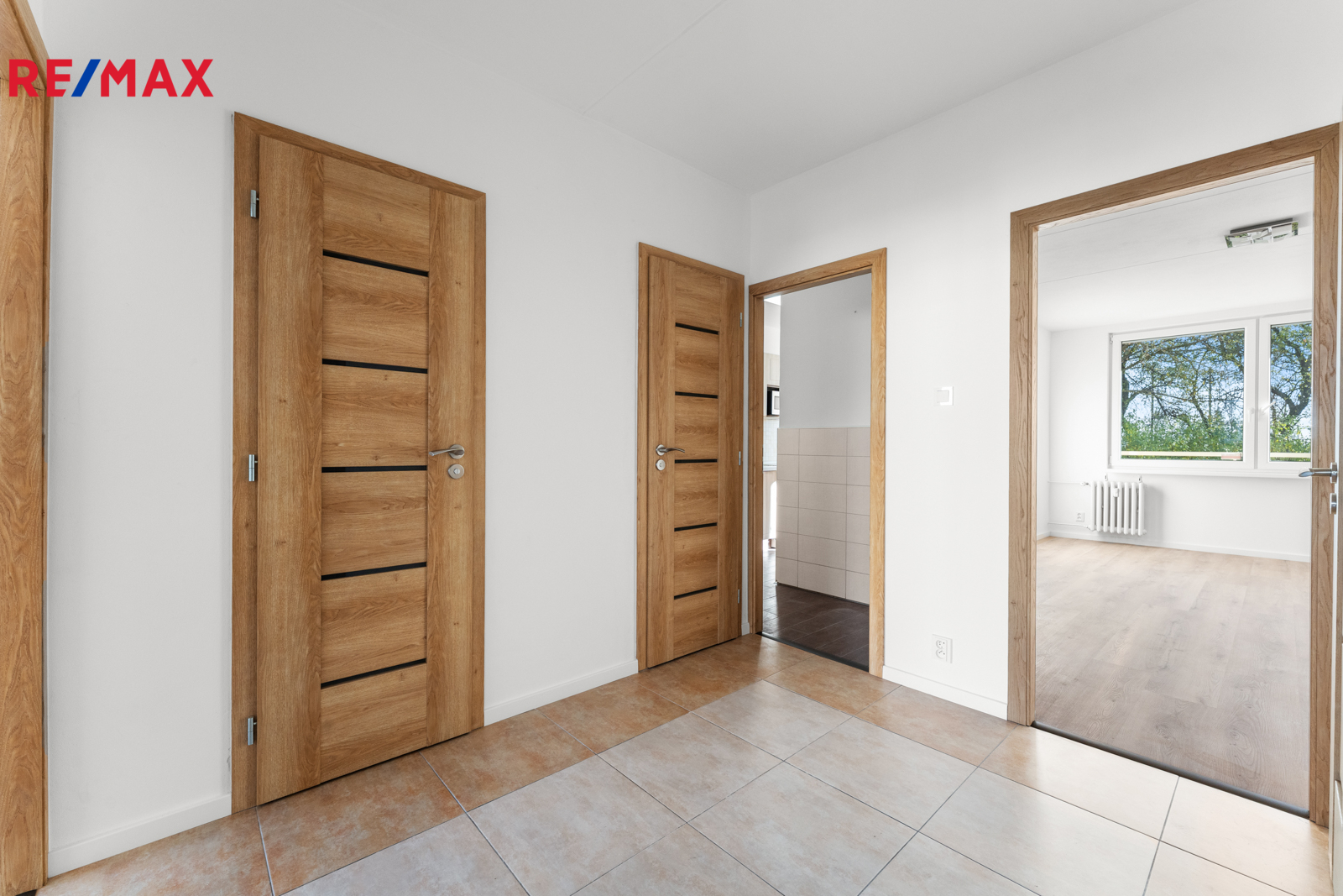 Dispozice bytu je prakticky řešená – ze vstupní chodby je přístup do všech místností: dvou neprůchozích pokojů, obývacího pokoje, kuchyně, koupelny, samostatné toalety a komory. Z obývacího pokoje je vstup na lodžii orientovanou směrem do zeleně. Ostatní místnosti jsou orientovány do ulice, kde je možnost parkování v rámci modré zóny.