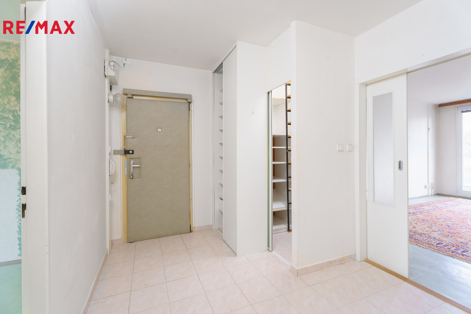 Vstupní chodba-předsíň je v centrální poloze bytu a umožňuje samostatné vstupy do všech jeho ostatních částí včetně praktické šatny. Na západní stranu je situovaný prostorný obývací pokoj s posuvnými vstupními dveřmi a zároveň balkónovými dveřmi na pěknou velkou lodžii, širokou přes obývací pokoj i kuchyni. Kuchyně je vybavená kuchyňskou linkou s plynovým sporákem, troubou a poskytuje dostatek prostoru pro vybavení i jídelní stůl. Na opačnou východní stranu jsou situovány dva pokoje, nejčastěji využívané jako ložnice a dětský pokoj. Koupelna s vanou i připojením pro automatickou pračku a samostatné WC jsou obložené keramickými obklady.
