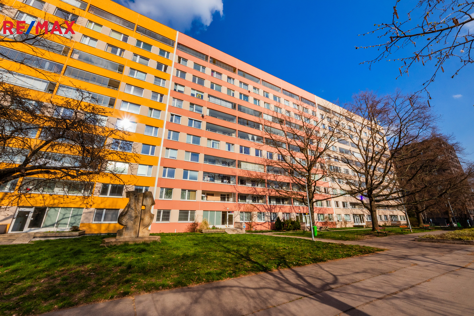 Panelový dům je po celkové revitalizaci včetně právě dokončené renovaci společných prostor.