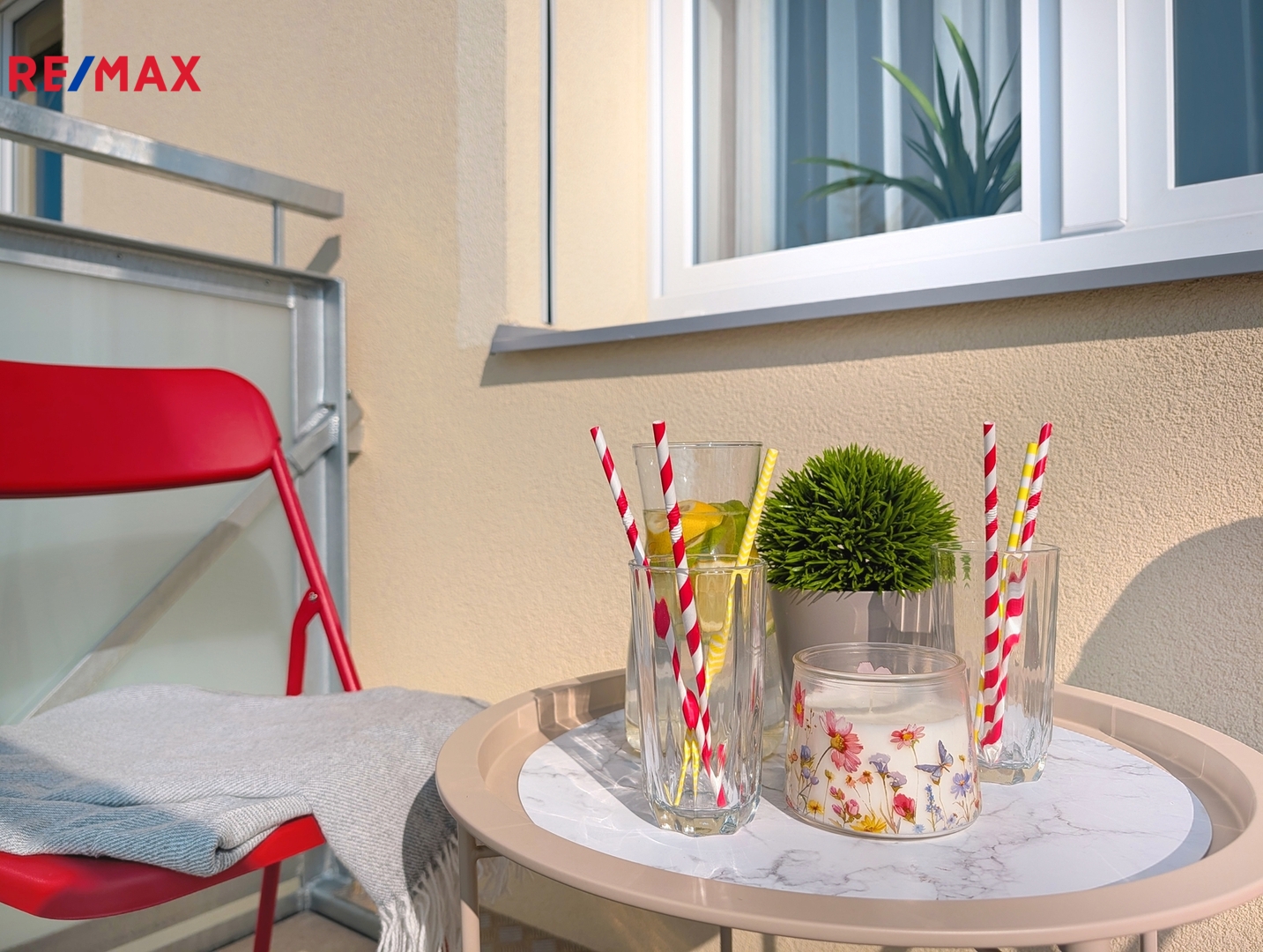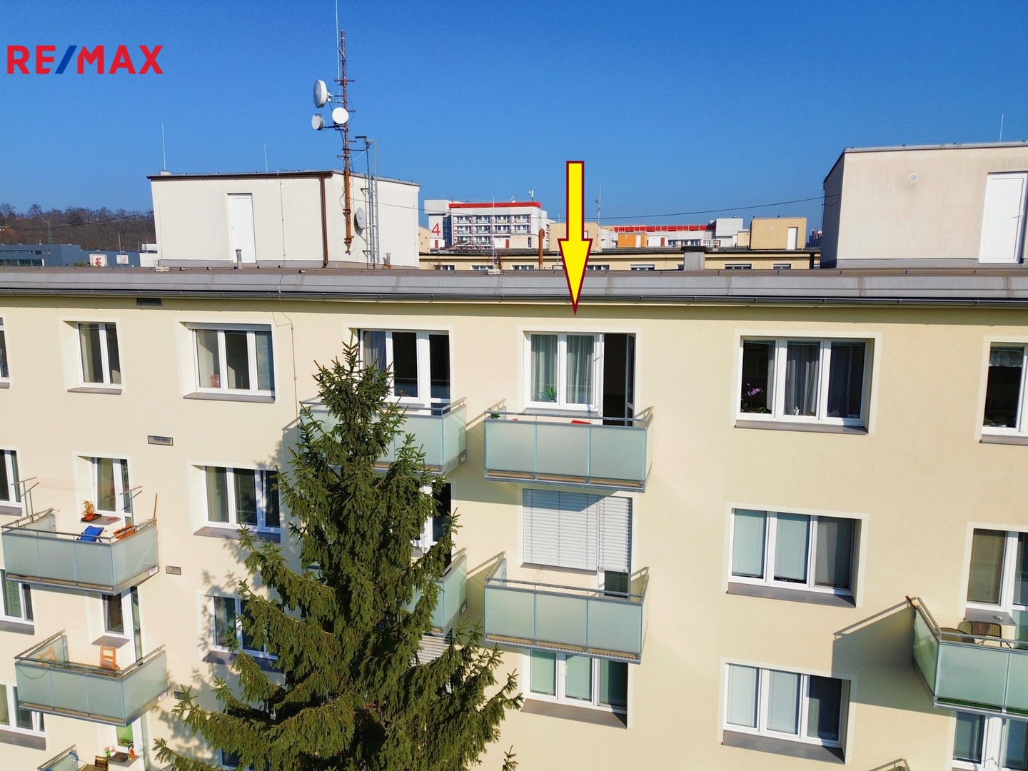 Nachází se v 6. nadzemním podlaží, tedy v posledním patře revitalizovaného domu, a nabízí příjemný výhled do okolí. Díky orientaci na východ a západ je krásně prosvětlený po celý den. Večer si můžete užít příjemné chvíle na balkoně o velikosti 3,6 m² s výhledem na západy slunce.