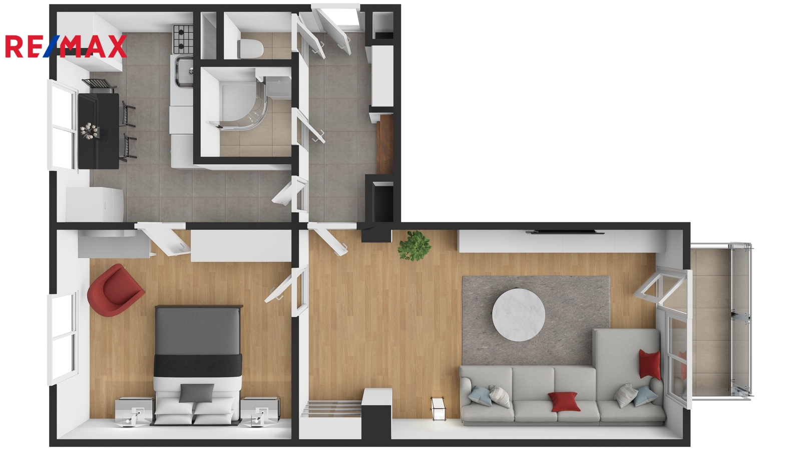Obývací pokoj a ložnice jsou ponechány bez nábytku, takže si je nový majitel může zařídit podle vlastního vkusu a potřeb.