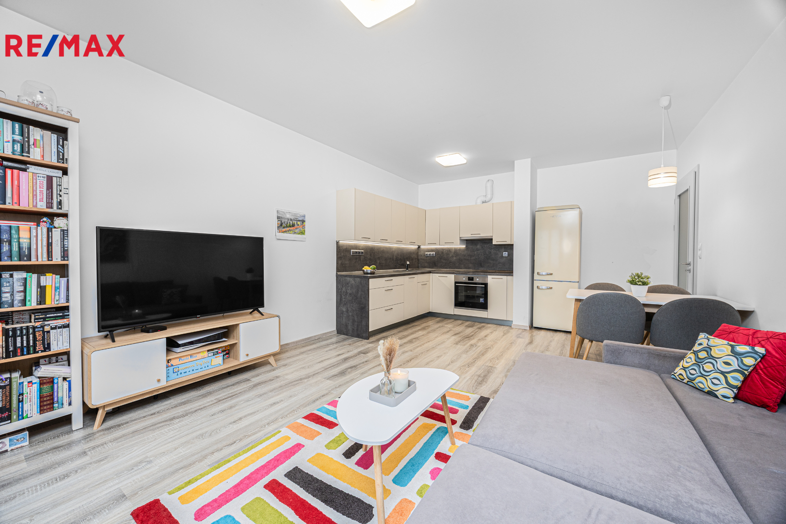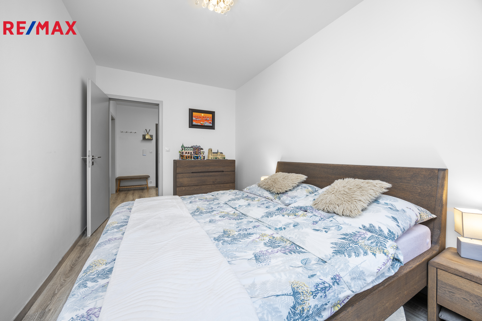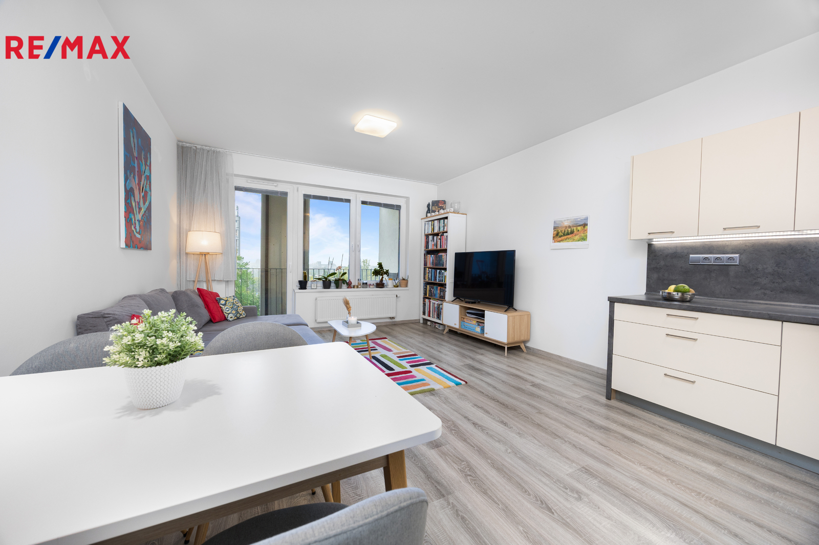 Byt se nachází ve 4. patře moderního bytového domu s výtahem, kolaudovaného v roce 2020. Disponuje prostorným obývacím pokojem s moderní kuchyňskou linkou a vstupem na lodžii. Dále je zde samostatná ložnice, koupelna s vanou a místem pro pračku a sušičku, a předsíň s vestavěnými skříněmi.