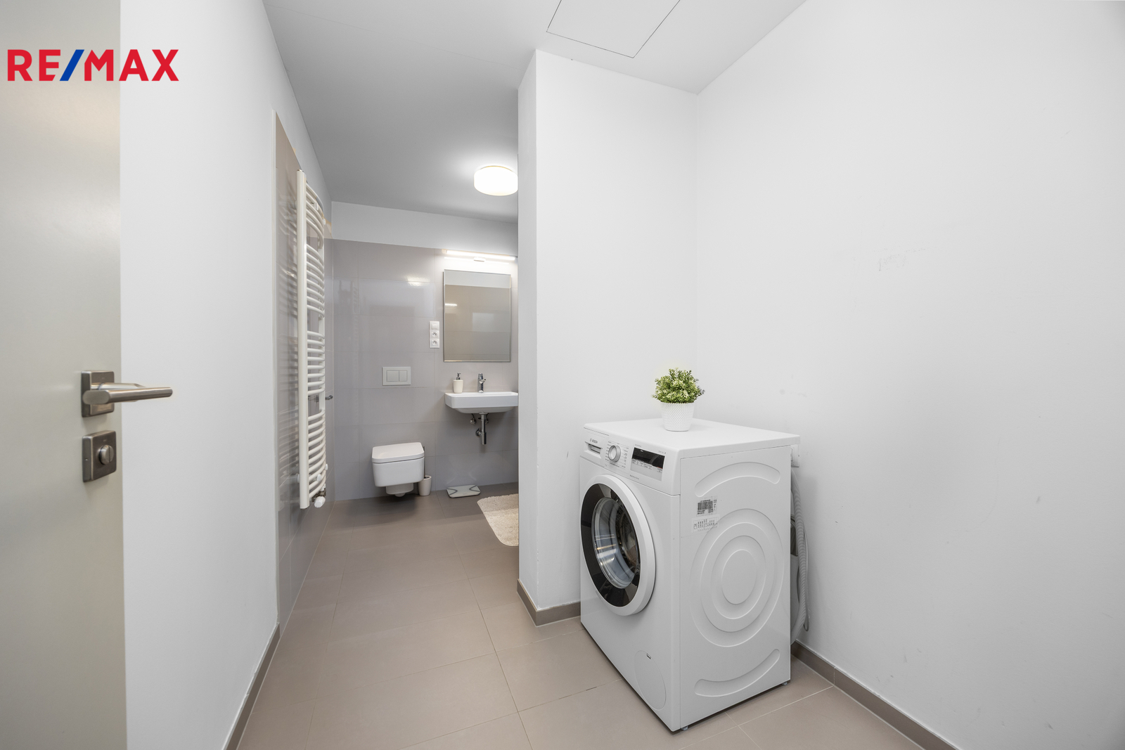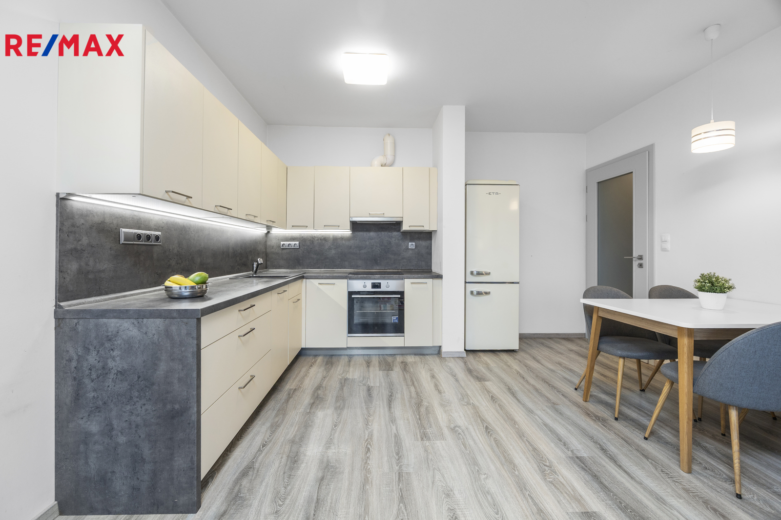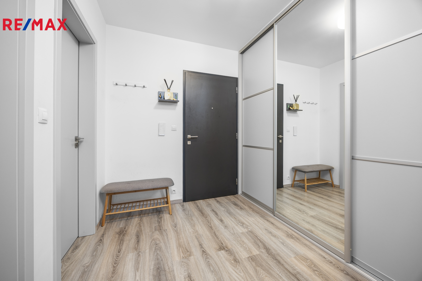 Byt se nachází ve 4. patře moderního bytového domu s výtahem, kolaudovaného v roce 2020. Disponuje prostorným obývacím pokojem s moderní kuchyňskou linkou a vstupem na lodžii. Dále je zde samostatná ložnice, koupelna s vanou a místem pro pračku a sušičku, a předsíň s vestavěnými skříněmi.