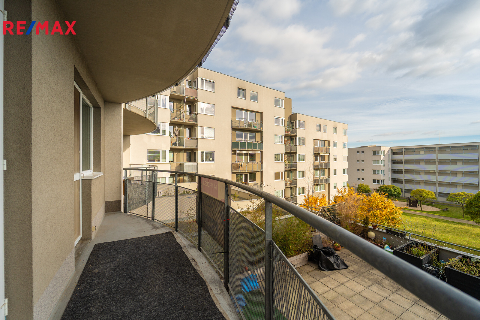 Oba pokoje mají vstup na prostorný jižně orientovaný balkon – ideální místo pro ranní kávu, odpočinek po práci nebo chvilku na čerstvém vzduchu s výhledem do zeleně.