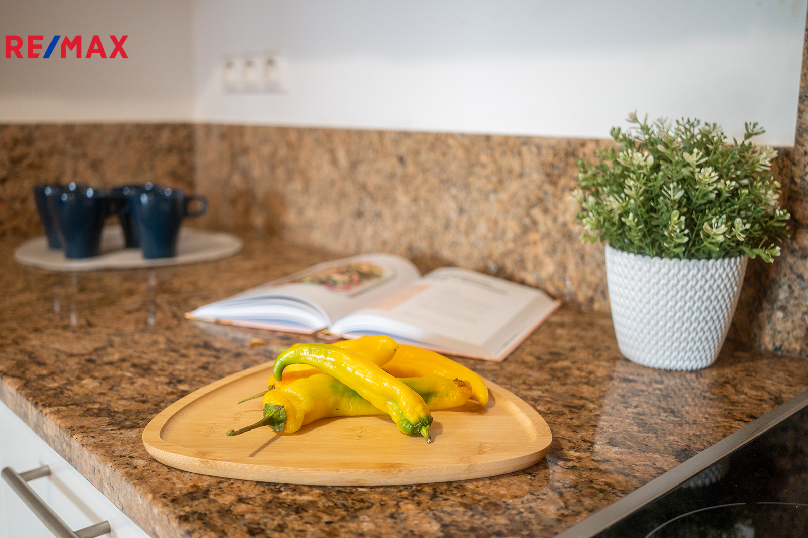 Kuchyňská linka na míru je promyšlená do posledního detailu a plně vybavená, takže potěší každého, kdo rád vaří.