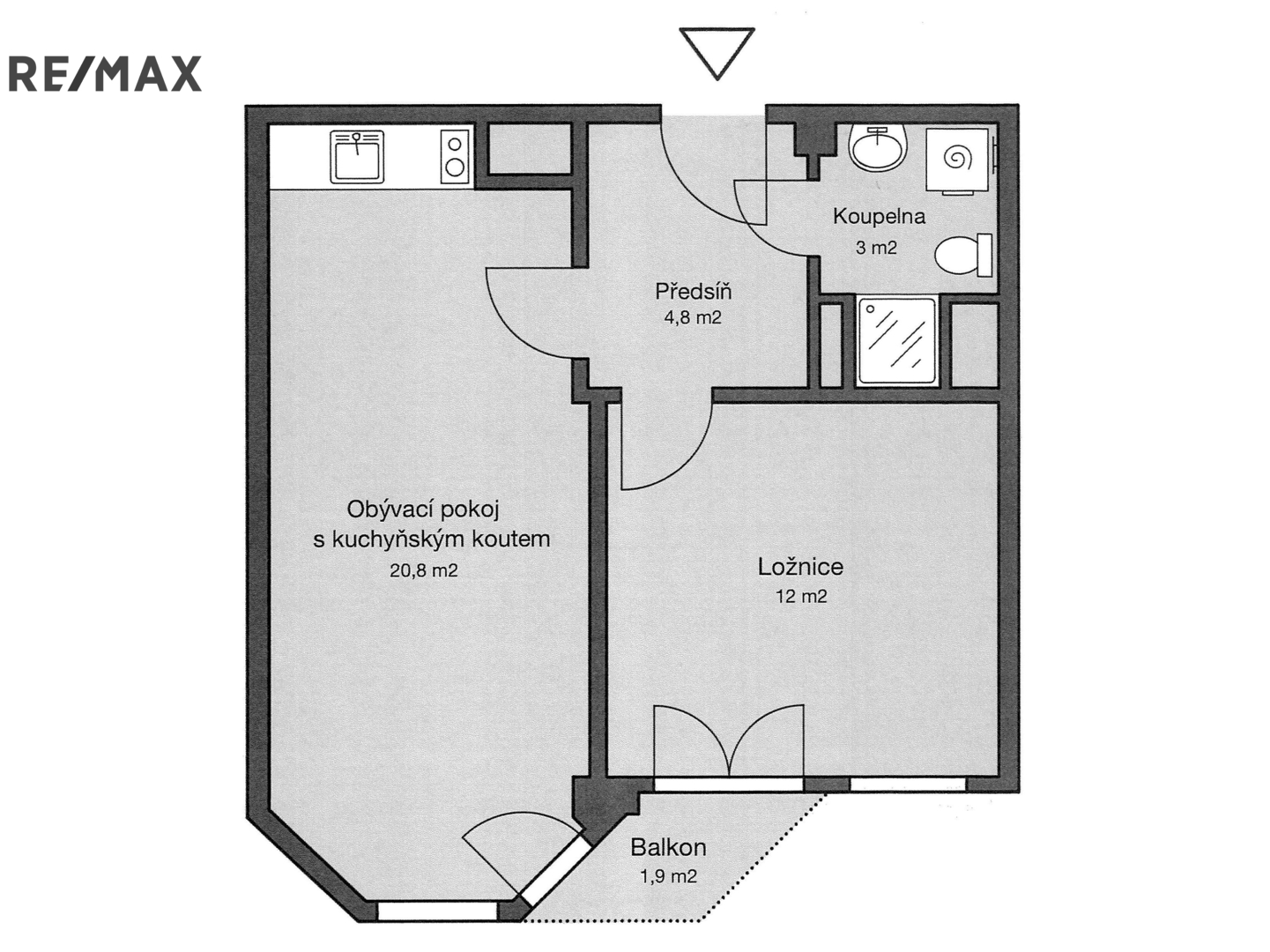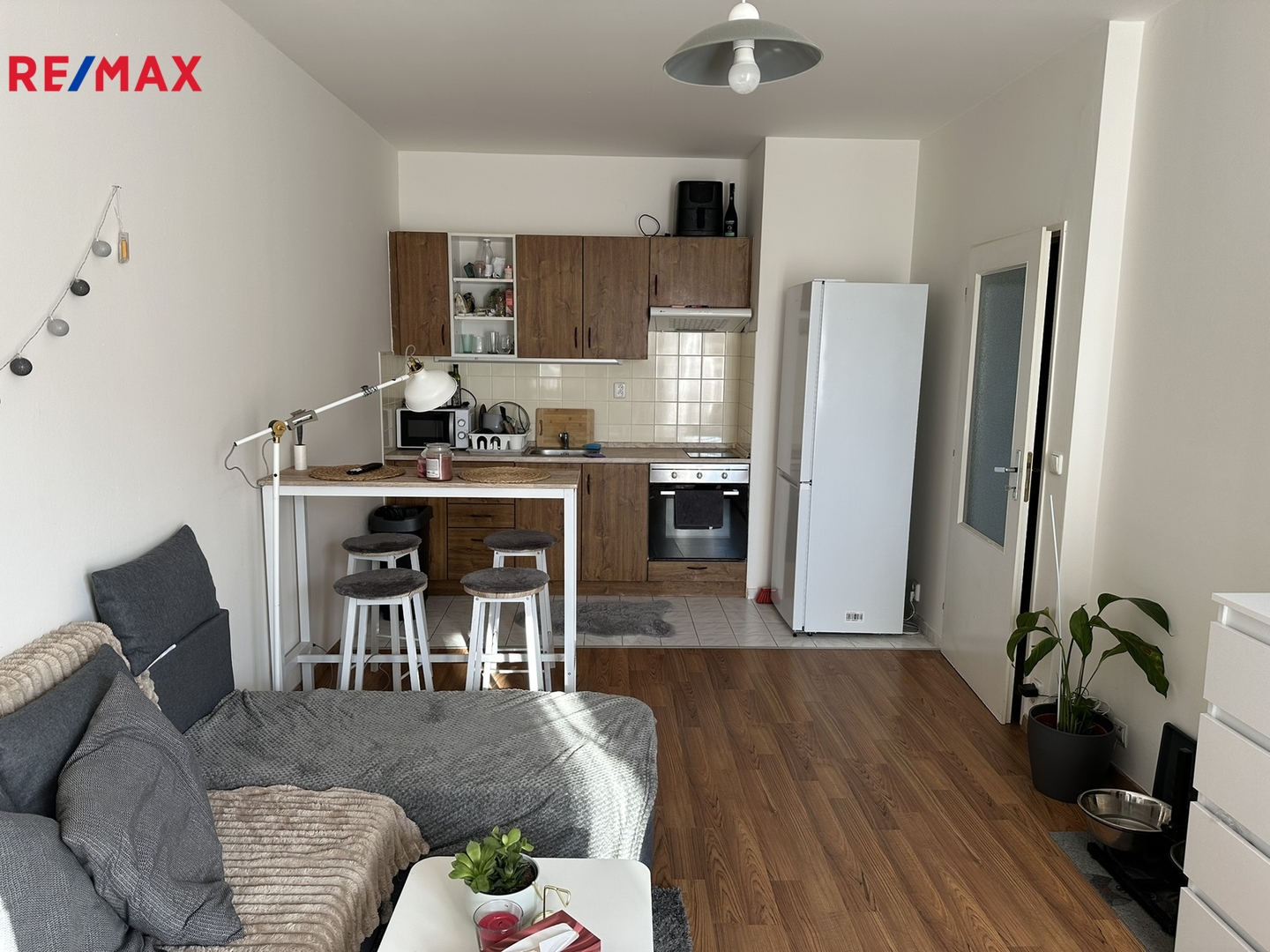 Byt o dispozici 2+kk/B má pokoje orientované na severozápad. Na podlaze v kuchyňském koutě, předsíni a v koupelně s WC je dlažba. V obývacím pokoji plovoucí podlaha a v ložnici zátěžový koberec. V koupelně je sprchový kout, WC, umývadlo a místo pro pračku s přípravou pro napojení. V předsíni je možnost vybudovat úložné prostory. Měsíční platba do fondu oprav je 650 Kč.