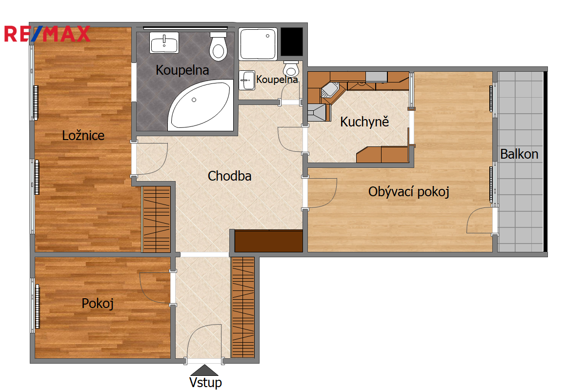 Byt o celkové užitné ploše 89,4 m² (včetně sklepa) nabízí prostornou a světlou předsíň s množstvím úložných prostor díky vestavěným skříním, dětský pokoj, velkorysou ložnici se samostatnou koupelnou a WC a praktickou šatní skříní. Dominantou je prostorný obývací pokoj s přímým vstupem na balkon (+6,9 m²), který poskytuje příjemné místo k relaxaci nebo posezení s rodinou či přáteli. Součástí bytu je samostatná kuchyň a další koupelna s WC. K bytu dále náleží prostorný sklep – ideální pro uložení sezónních věcí či sportovního vybavení.