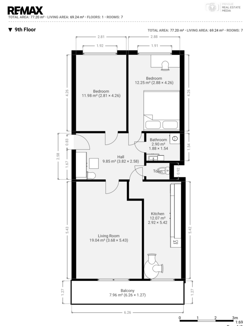 Byt zaujme především praktickým dispozičním řešením, které nabízí dostatek prostoru pro rodinné bydlení, ale zároveň poskytuje komfort i jednotlivci nebo páru, kteří ocení vzdušnost a variabilitu jednotlivých místností.