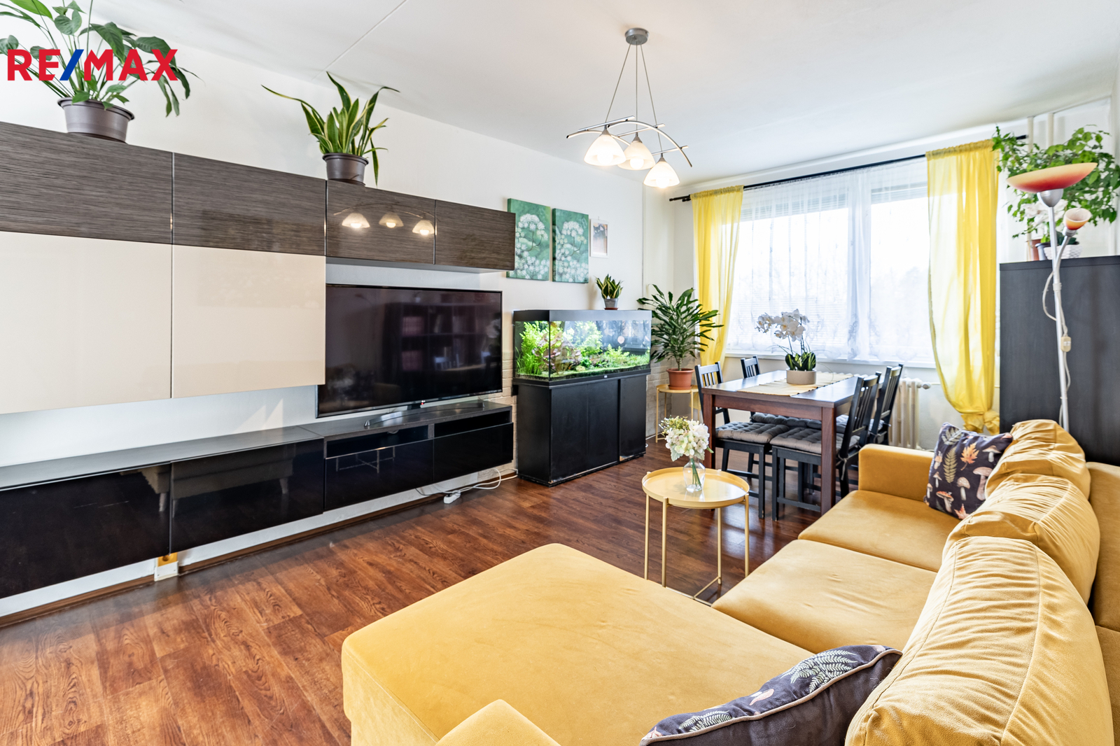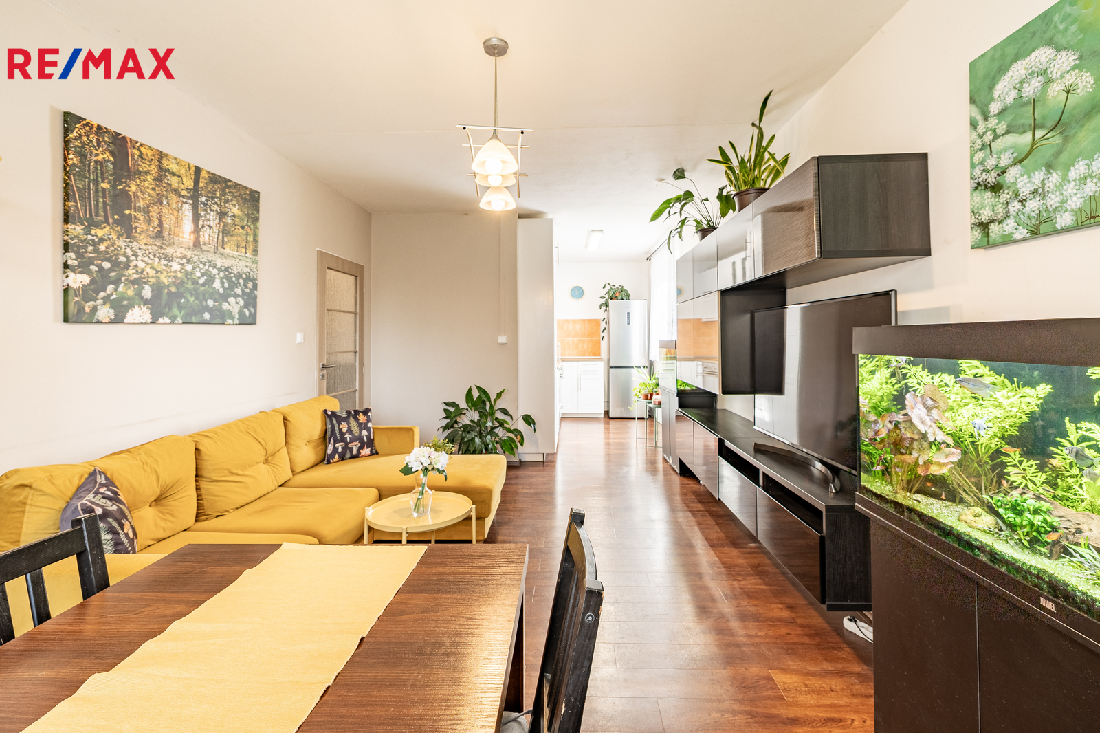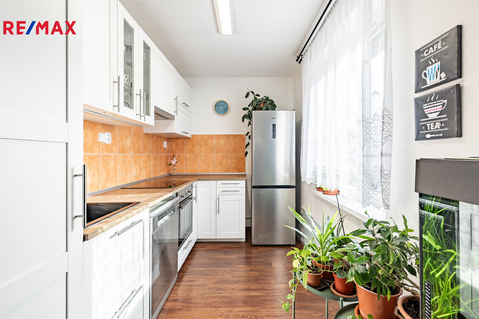 Dispozice zahrnuje světlý obývací pokoj s kuchyní, která má vlastní okno – velká výhoda pro větrání i přirozené světlo. Dva samostatné pokoje, koupelnu s vanou a samostatné WC.