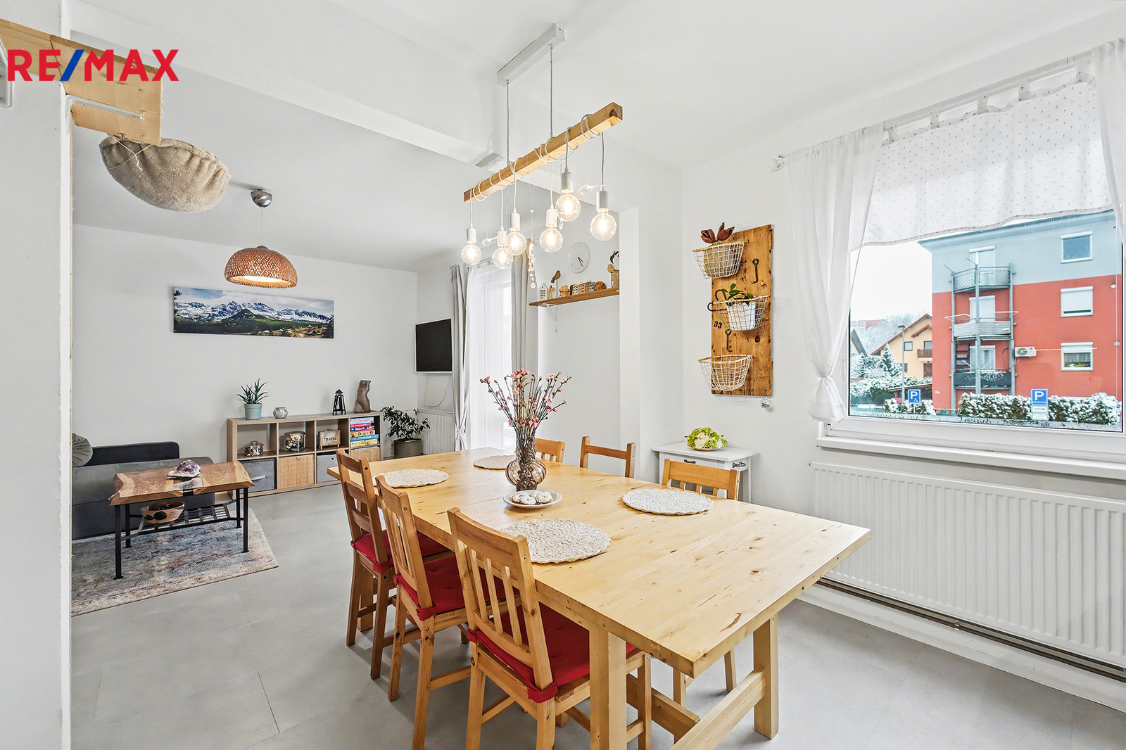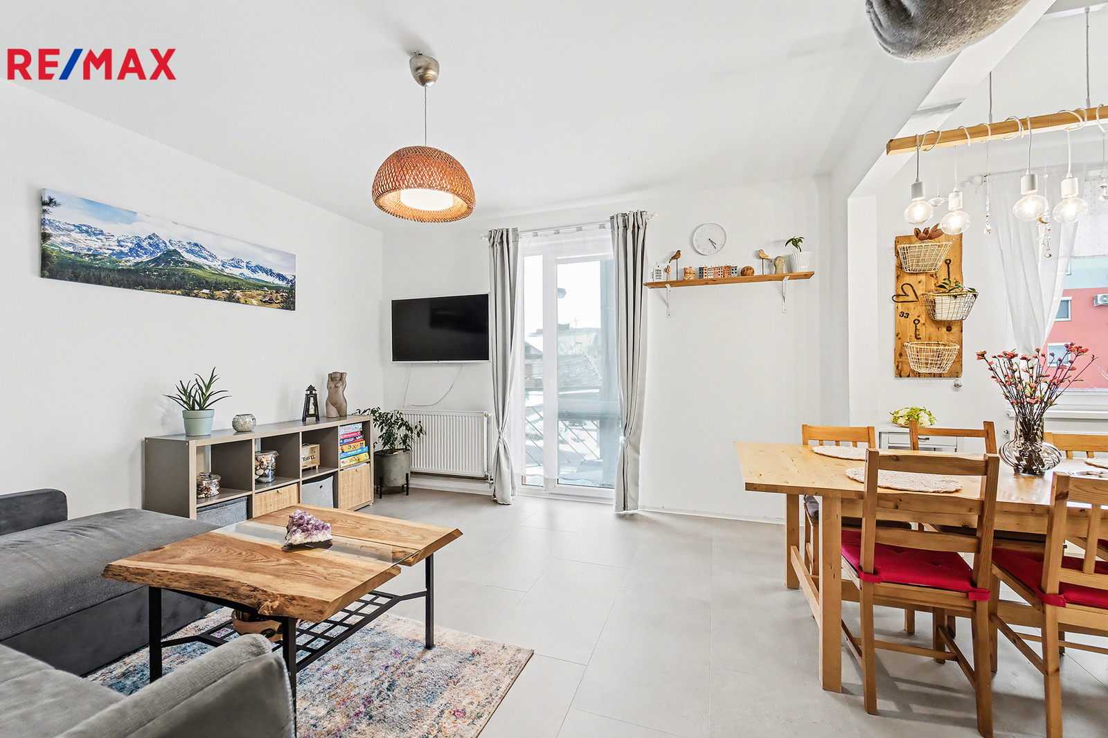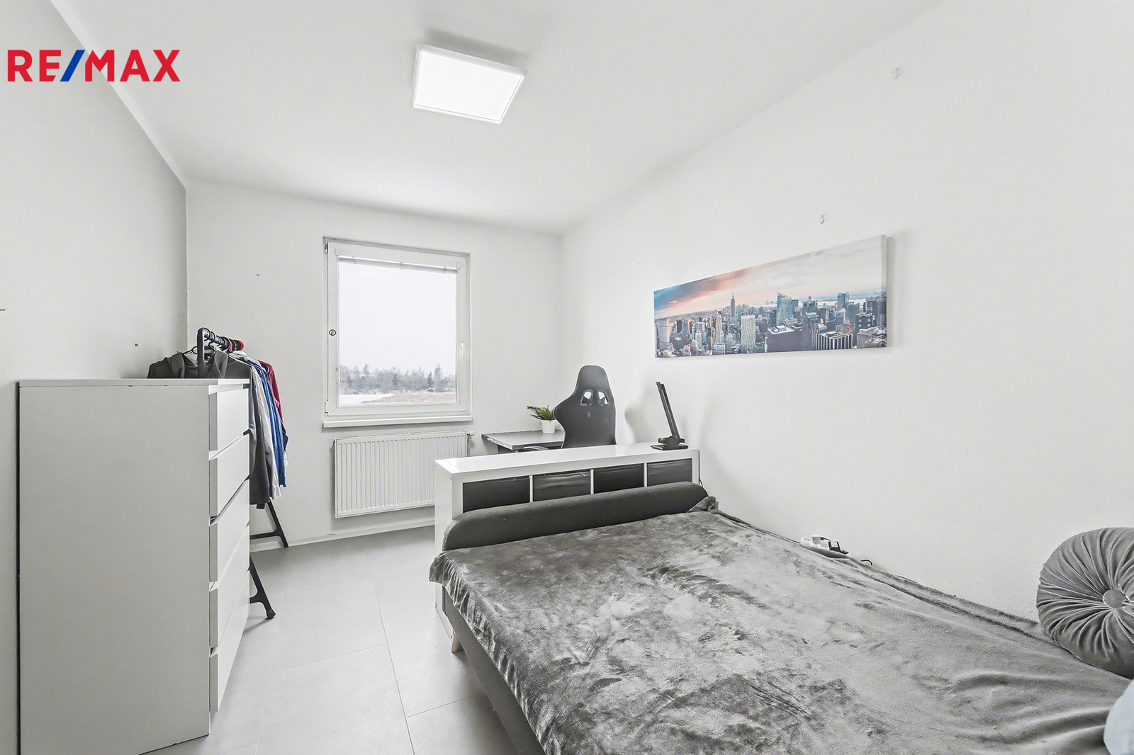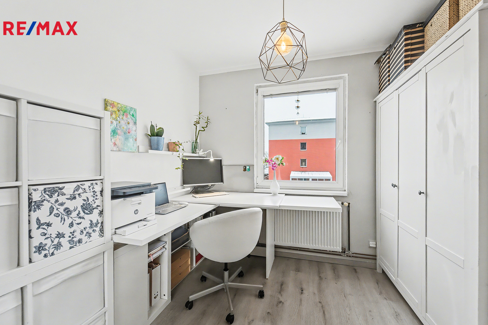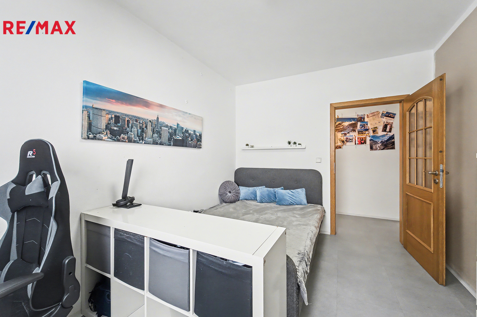 Nabízíme Vám ke koupi bytovou jednotku ve vynikajícím stavu o celkové užitné ploše 82,1 m2 (vč. 2 m2 balkon + 0,8 m2 sklepní kóje) s parkovacím stáním před domem. Byt, nacházející se v 2. nadzemním podlaží domu (betonová konstrukce firmy Canaba), se skládá z obývacího pokoje s kuchyňským koutem, tří ložnic, chodby a koupelny s toaletou.