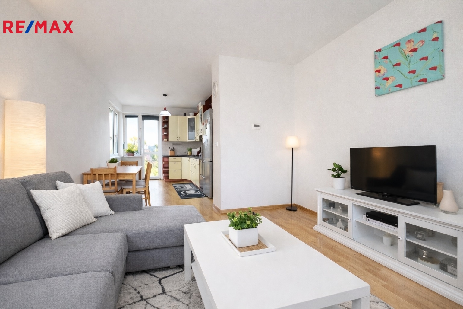 Obývací pokoj s kuchyňským koutem poskytuje dostatek úložného i pracovního prostoru. Prostor je prakticky rozložen na kuchyňskou a relaxační část, ze které vede vstup na terasu. Ložnice nabízí vestavěné skříně. Koupelna je vybavena vanou, umyvadlem, úložnými prostory, pračkou a plynovým kondenzačním kotlem, který slouží k ohřevu vody i vytápění bytu.